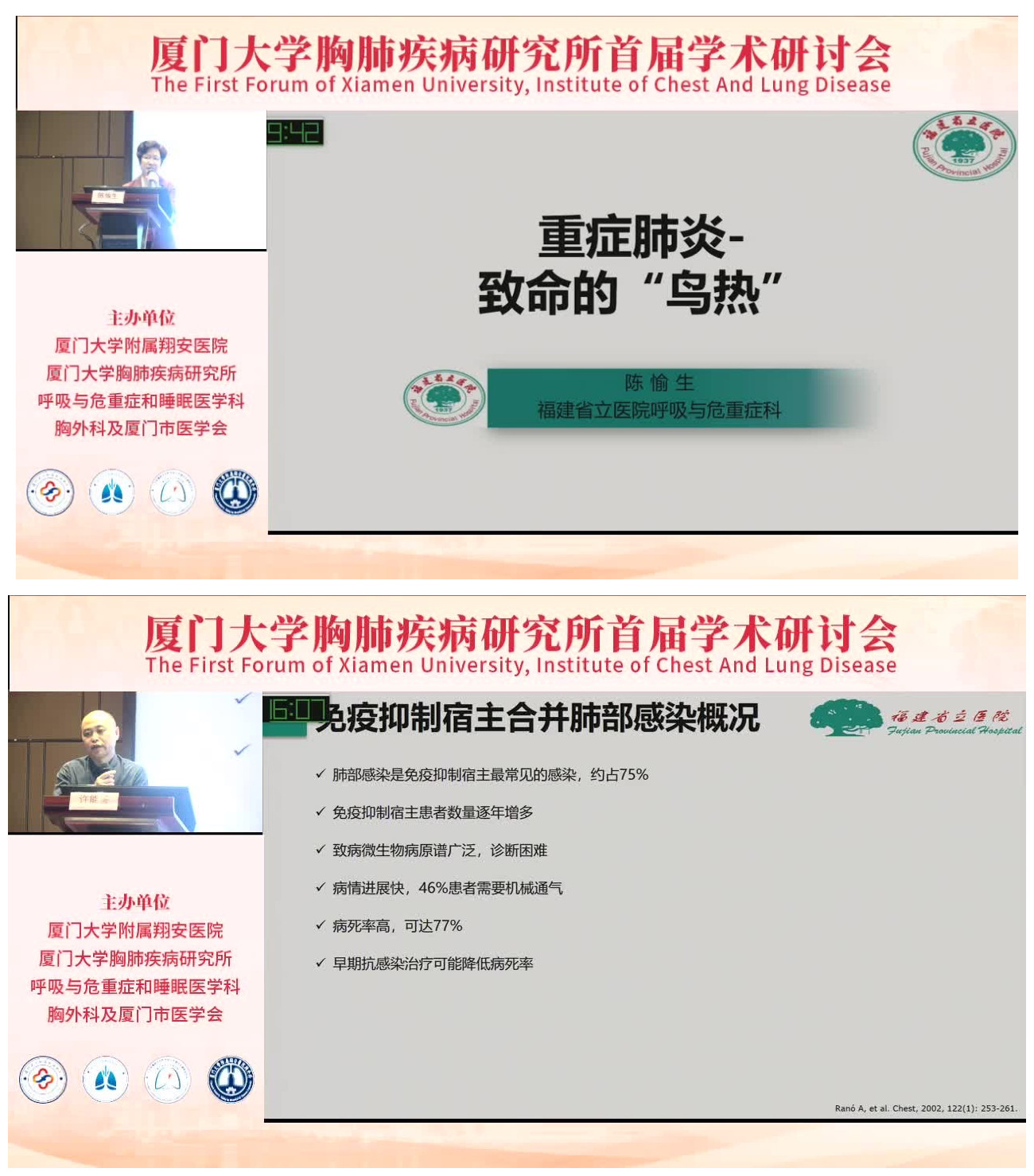来自福建省立医院的陈愉生教授、许能銮教授先后通过大量临床病例分享及文献复习,总结了关于鹦鹉热衣原体感染及免疫抑制宿主肺部感染的相关特点及临床诊治思路。