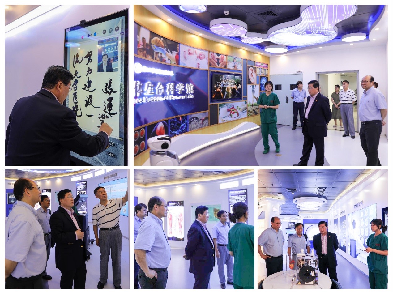 在参观我院临床教学培训示范中心时,张院士写下了“努力建设一流大学医院”的题词。他表示,大学直属附属医院的建设应当坚持发展、紧抓科研,制定学科发展的卓越目标、开展高水平课题研究以及包容并蓄的人才环境,不断聚焦学科发展方向和特色、在高水平的竞争合作中发展进步。