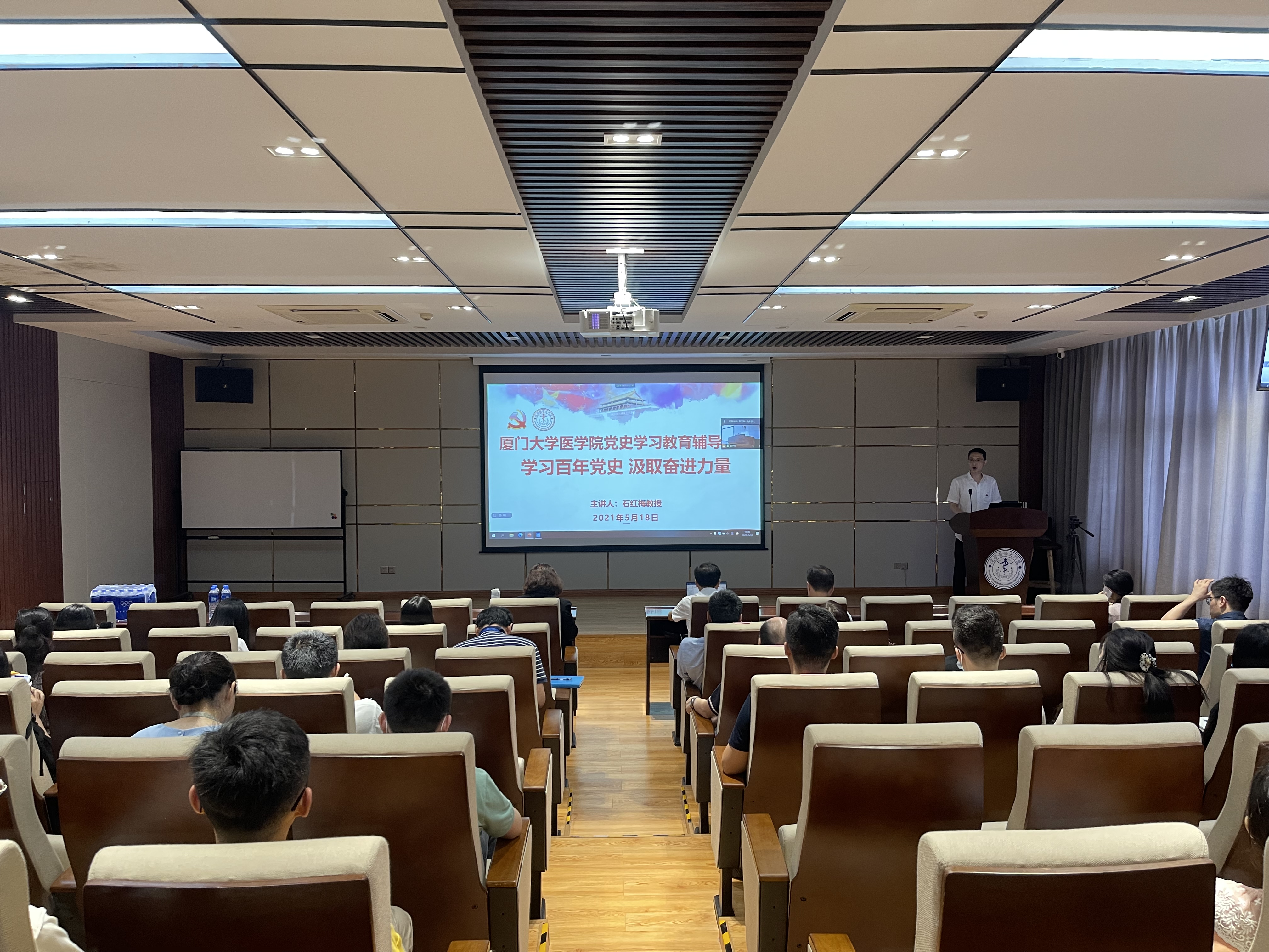 本次专题报告会是医学院、翔安医院开展党史学习教育系列活动之一,主题鲜明、内容丰富,既有理论高度,又紧贴实际,具有很强的政治性、指导性、针对性,有助于党员进一步深化对开展党史学习教育重大意义的认识,从党的光辉历程中汲取强大力量,将学习成效转化为工作动力,以推动医学院、翔安医院各项事业高质量发展。