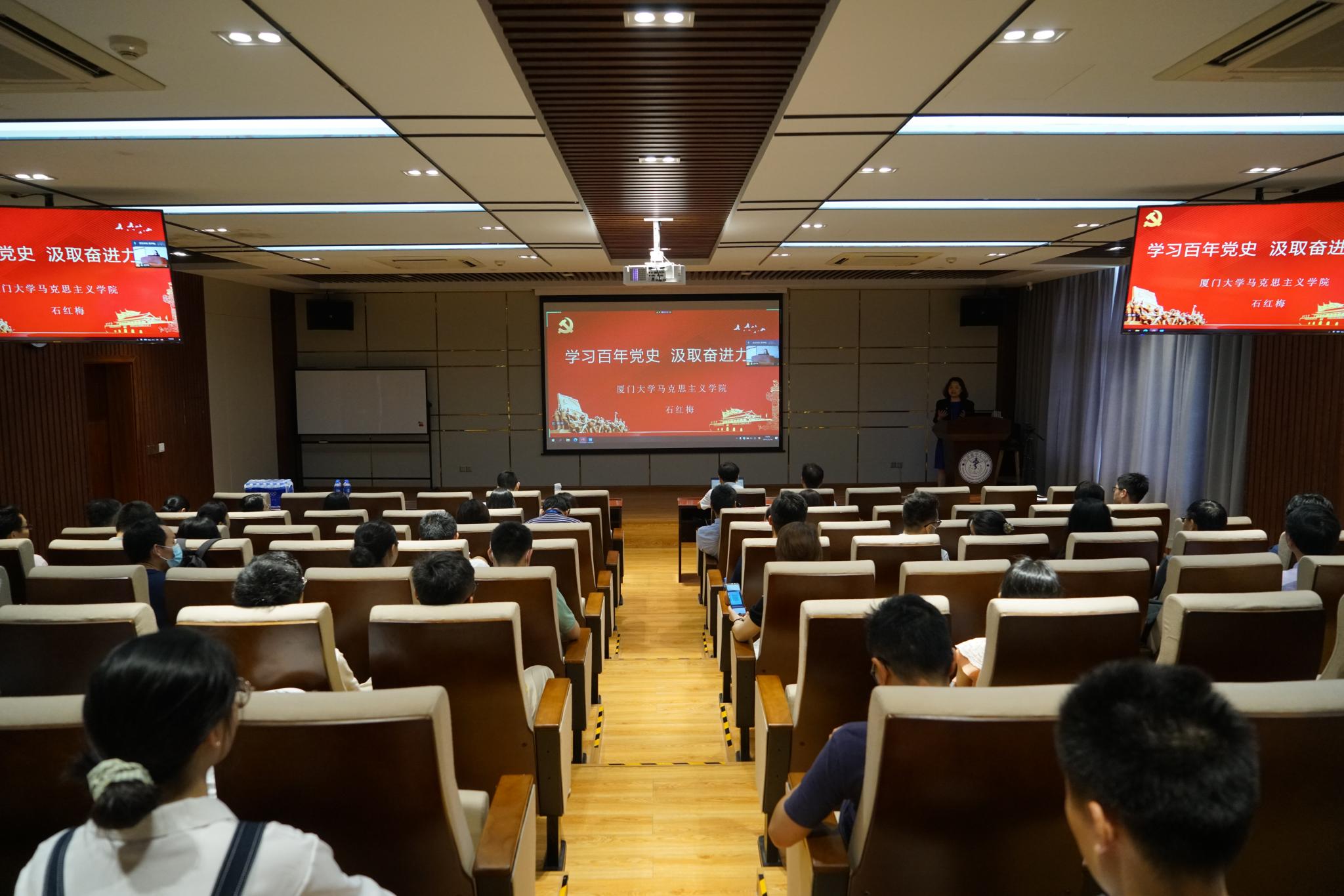 5月18日上午,医学院与翔安医院党委于成义楼102报告厅举办党史学习教育专题辅导报告会。马克思主义学院石红梅教授做《学好百年党史 汲取奋进力量》专题报告。医院党政班子成员和支部书记参与本次报告会。大会开设线上同步直播,党员教职工线上参会。