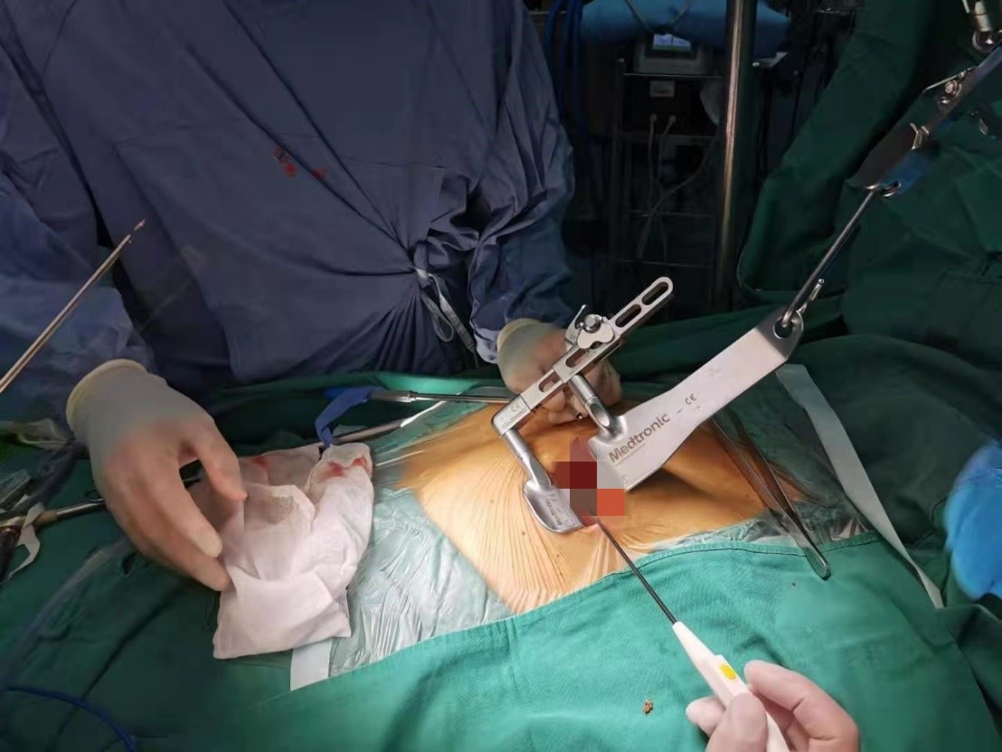 手术于4月28日进行,刘宗泓主任团队在不伤及肋骨和胸骨的前提下,在陈先生左侧第四肋间切开一个6-8cm的小切口。