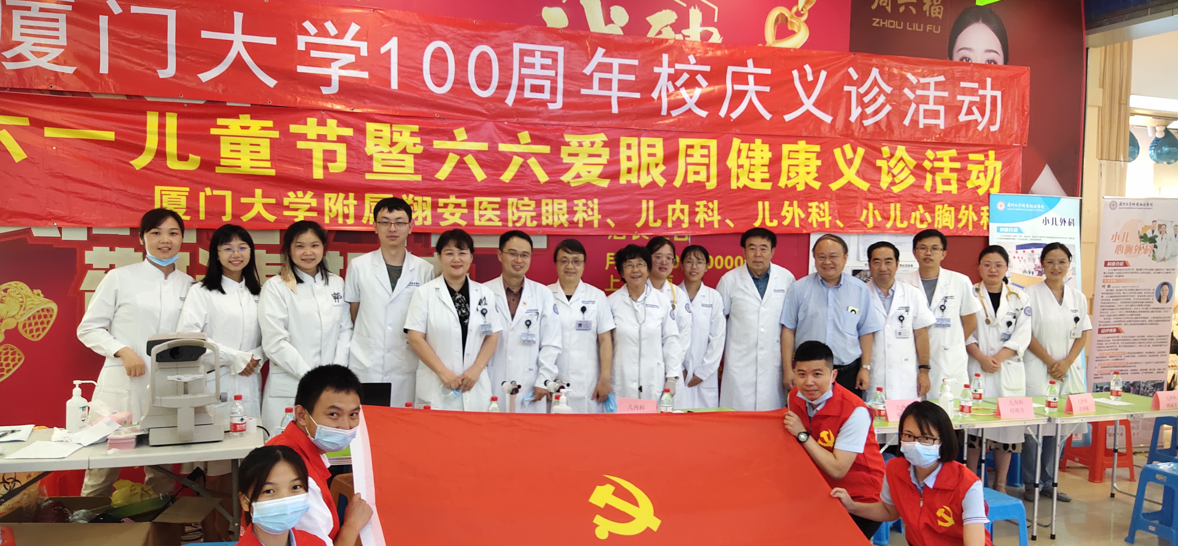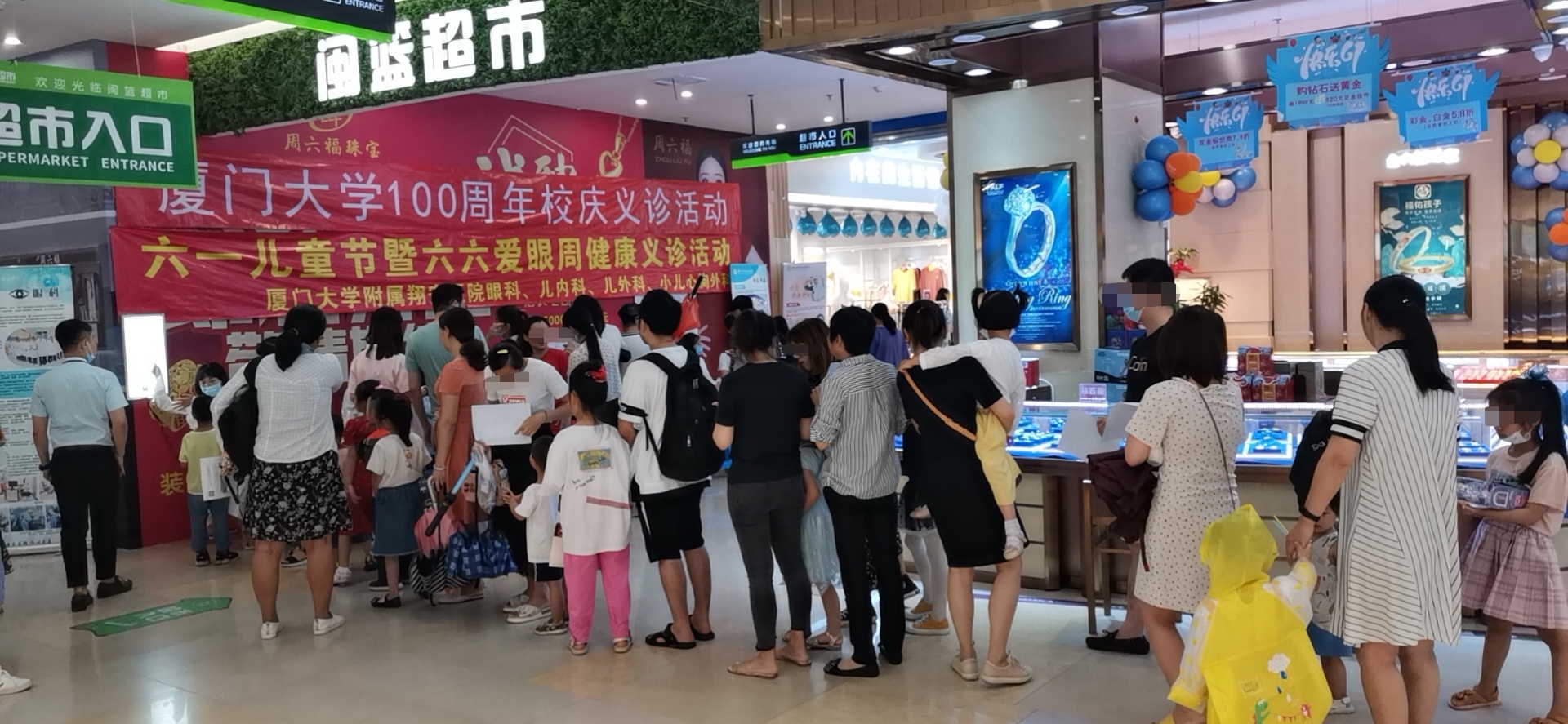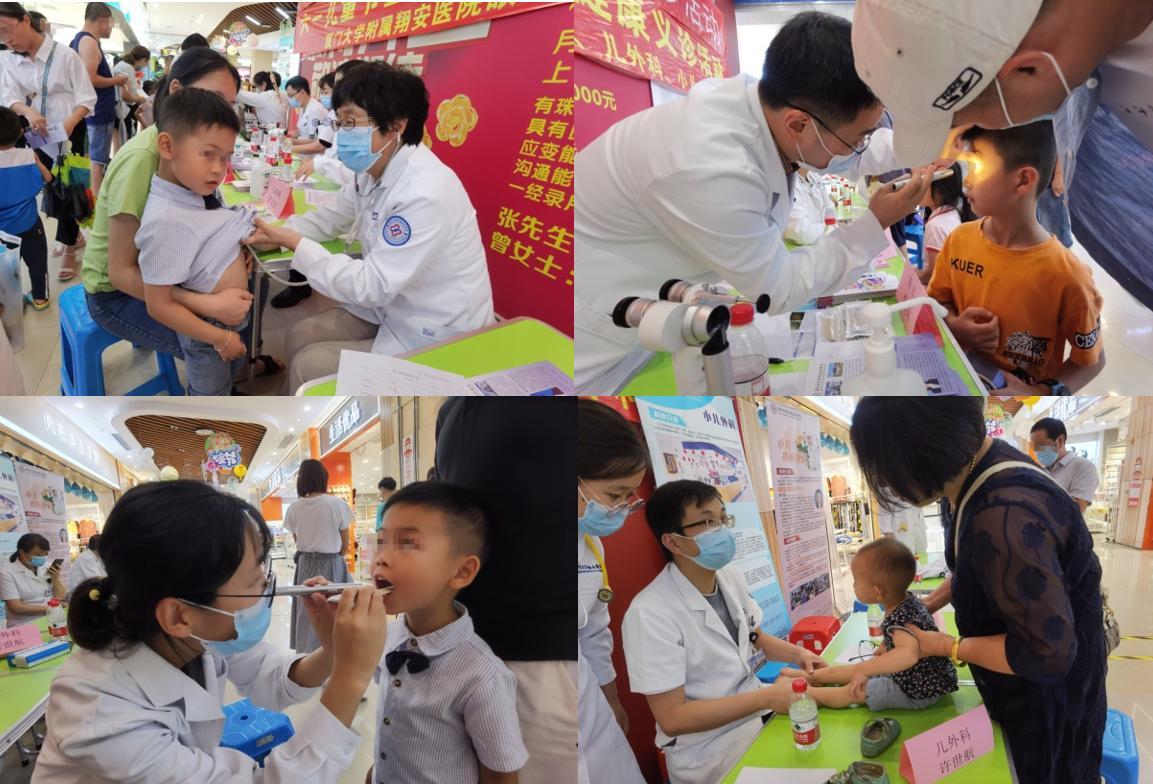 为将党史学习教育成果融入到日常工作中,扎实开展“我为群众办实事”实践活动,进一步提高社区居民的健康意识,在2021年6月1日儿童节来临之际,厦门大学附属翔安医院(厦门大学医学中心)眼科与儿内科、儿外科、小儿心胸外科携手闽篮城市广场共同守护青少年儿童的身心健康,为辖区群众送温暖、献爱心、办实事。