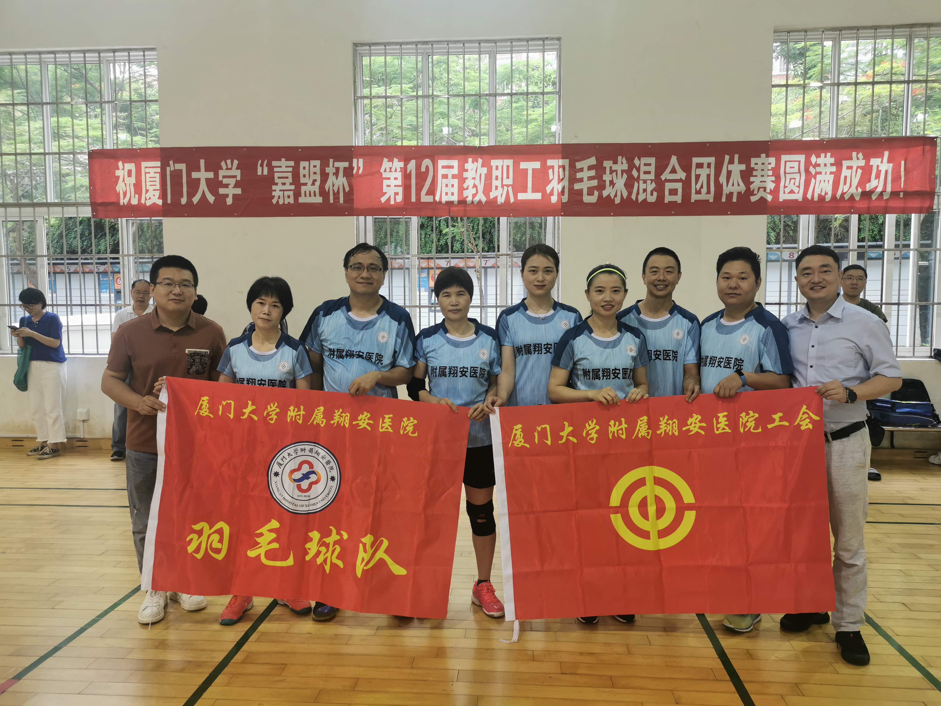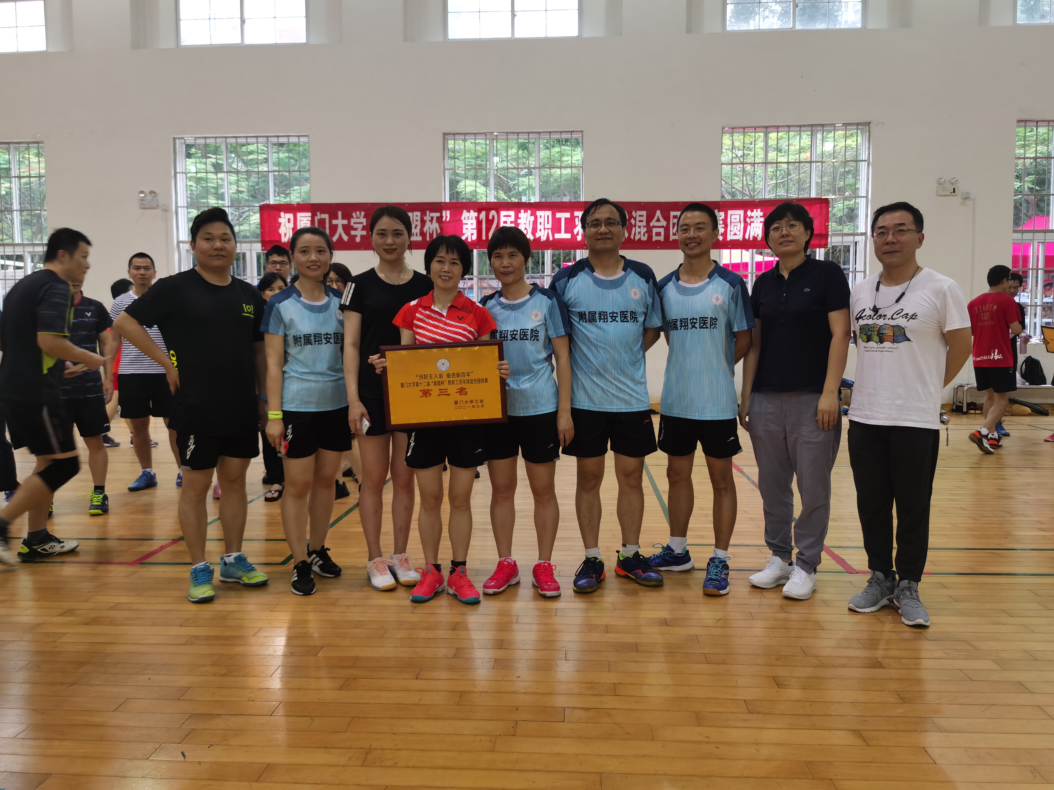 在6月6日结束的厦门大学“嘉盟杯”第12届教职工羽毛球混合团体赛中,厦门大学附属翔安医院与厦门大学医院联队勇夺第三名。这是厦门大学医院在各类重大体育赛事中取得的最好成绩。