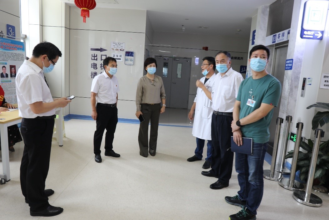 6月14日端午节,翔安区副区长程明,带领区卫健局党工委书记、局长陈闽生、区卫健局副局长陈彼得一行来院检查新冠病毒疫苗接种工作情况,并对坚守在一线的工作人员致以节日的问候。医院党委书记张建安及相关部门负责人陪同检查。