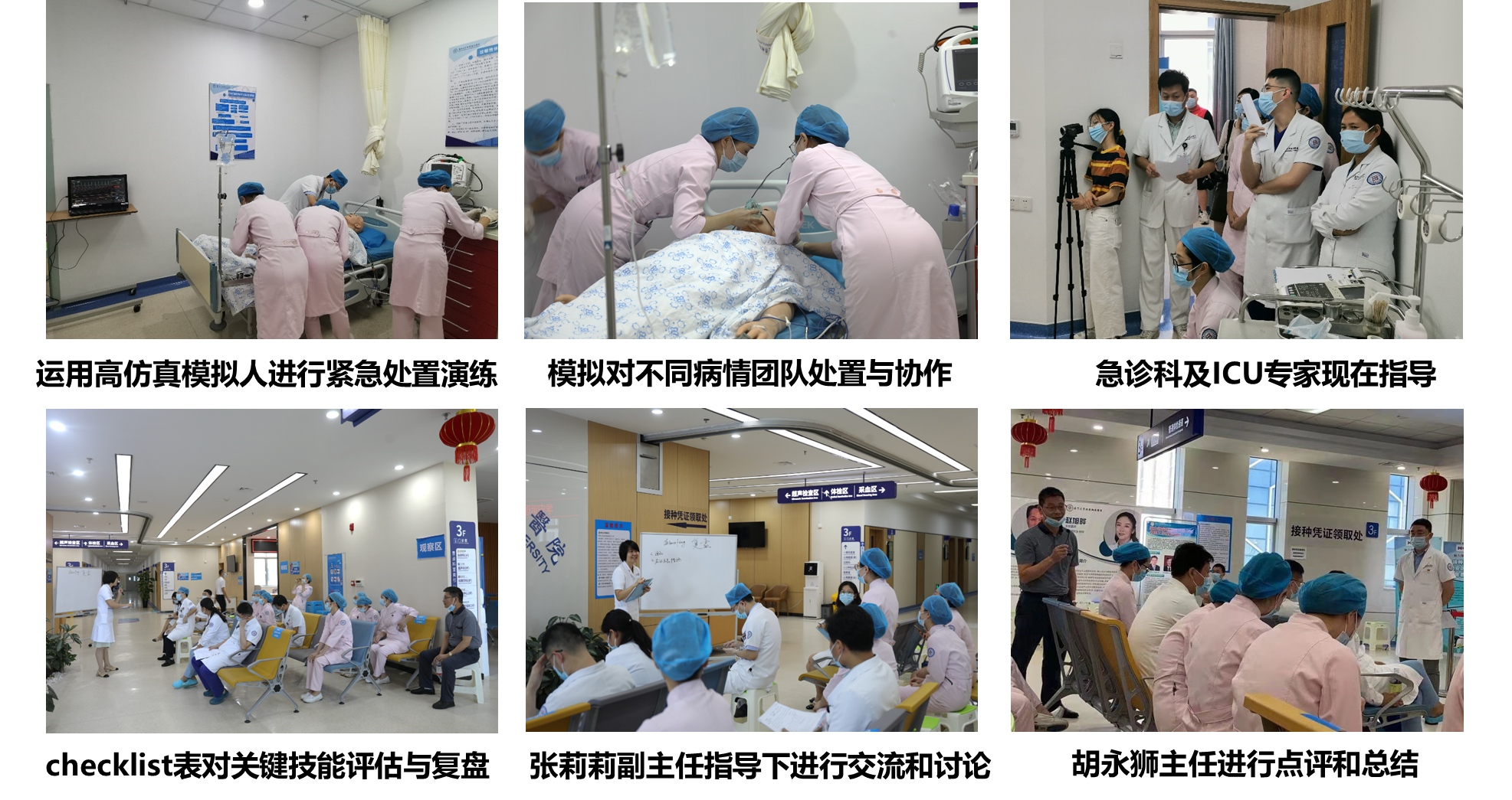 在国家临床教学培训示范中心汤乐民主任指导下,张莉莉副主任、付歆欣老师以及门诊部邓斌副主任、周丽伟护士长经过广泛的文献检索、脚本修改及讨论,详细设计了方案:即通过原位模拟,利用标准化病人和高仿真模拟人,结合场景转换,设计环环相扣的病情变化,重现新冠疫苗接种后过敏性休克的临床案例,通过角色扮演,识别疫苗接种后的过敏反应,强化医护团队对患者进行快速全面的评估和病史采集。通过有效的团队调动和协作,引导医护团队尽快启动应急反应系统和报告流程、进行模拟急救实操,在安全及规范的环境下实施正确的处置。利用Checklist表进行复盘,在国家临床教学培训示范中心教学团队的张莉莉副主任及急诊医学科张睿主治医师、张佳坡护士长及重症医学科顾秀菲主治医师指导下,针对每一个环节认真反思,充分讨论存在的问题和不足,对流程进行规范和完善。