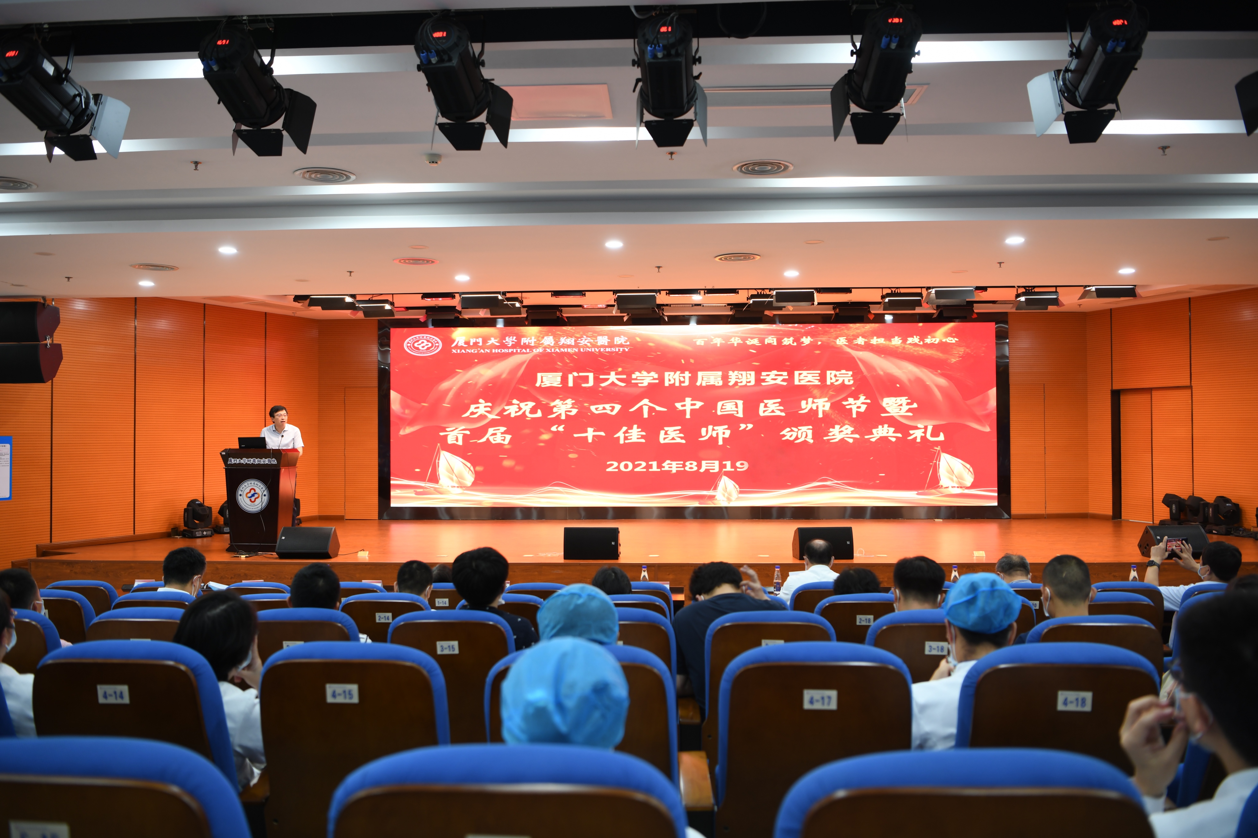8月19日下午,附属翔安医院隆重举办庆祝第四个中国医师节暨首届“十佳医师”“优秀医师”颁奖典礼活动,院领导班子及医师代表参加会议,会议由邵晨副院长主持。