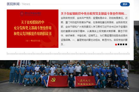 面对厦门市防疫形势的复杂严峻,医院党委坚持党建引领,强化责任担当,认真履职尽责,将疫情防控作为当前的首要政治任务,第一时间向全院广大党员发出《关于在疫情防控中充分发挥党支部战斗堡垒作用和党员先锋模范作用的倡议书》,倡导全体党员主动担当,彰显作为,坚决打赢疫情防控阻击战。