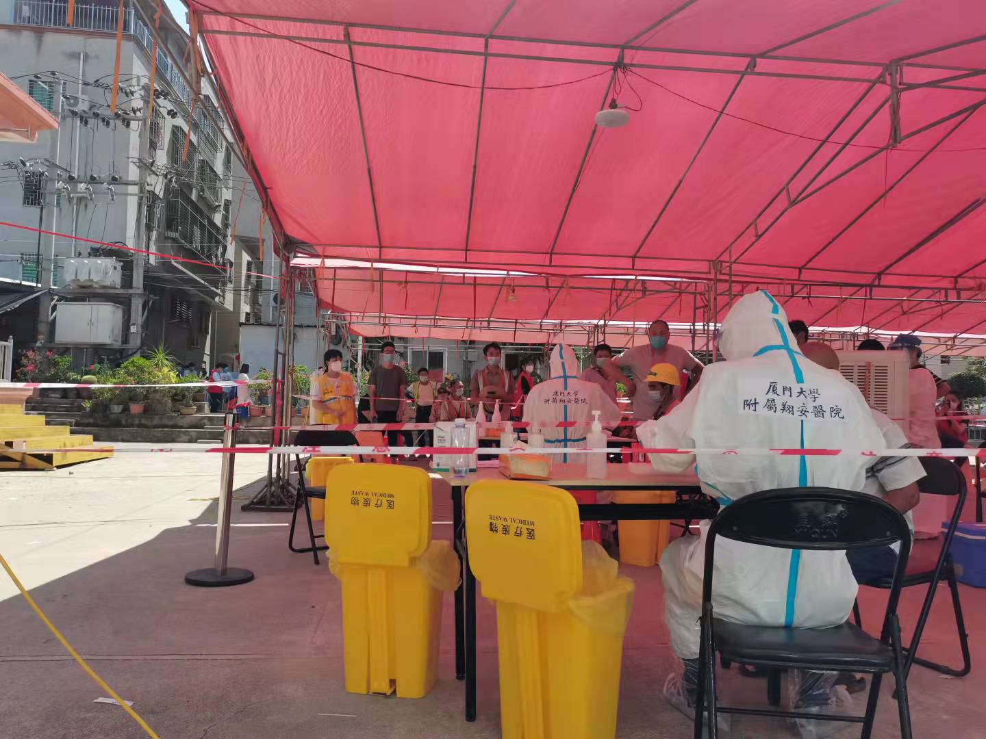 根据厦门市疫情防控指挥部统一部署,为及时有效发现和控制传染源,阻断疫情传播,9月20日,第三轮全员新冠病毒核酸检测启动。我院共派出324名医护人员增援翔安区、思明区两区核酸采样。其中,264名医护人员增援翔安区核酸采样(包括厦大医学院116名师生),我院思明院区派出60名医护人员增援思明区下沃社区和福海社区。