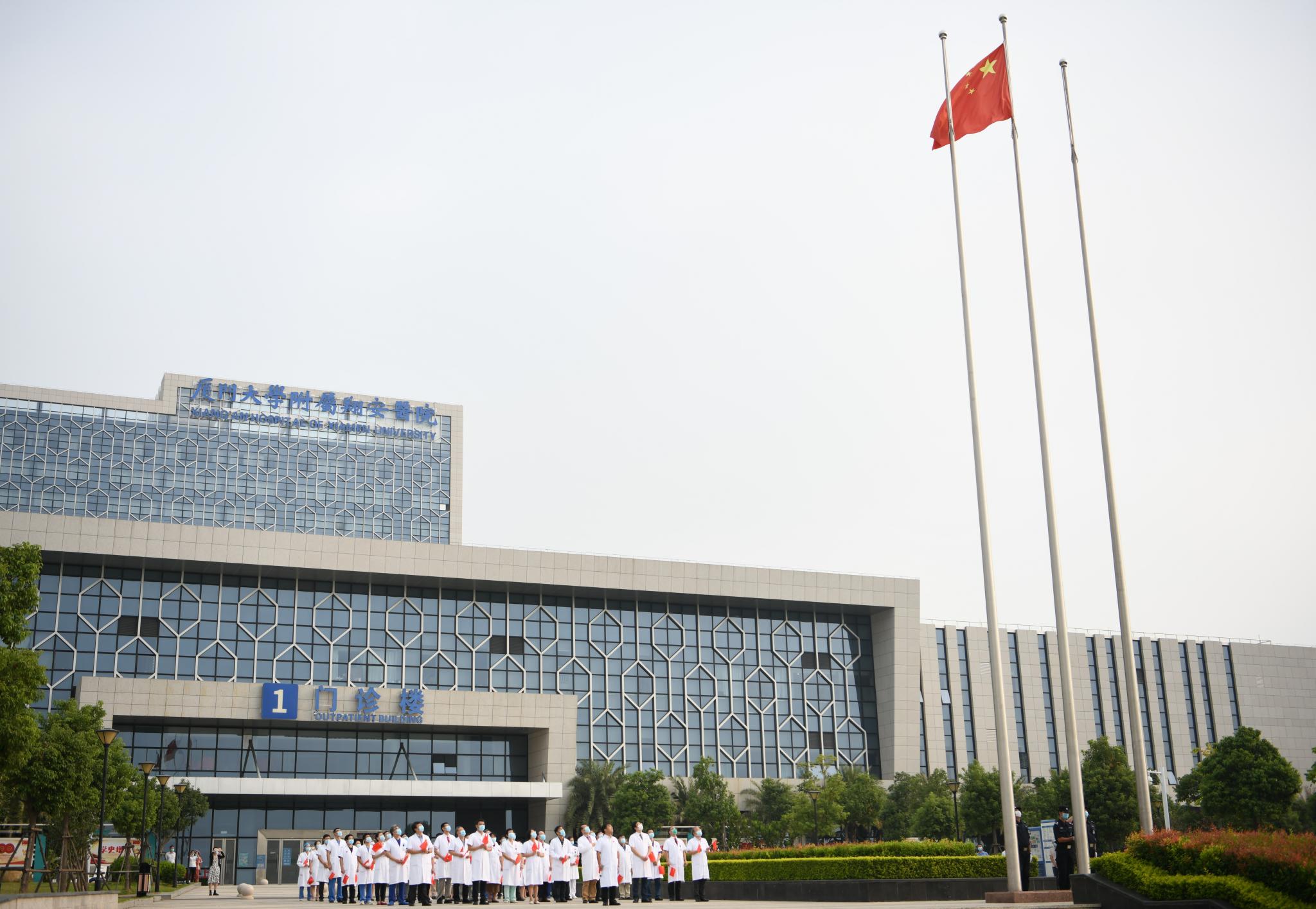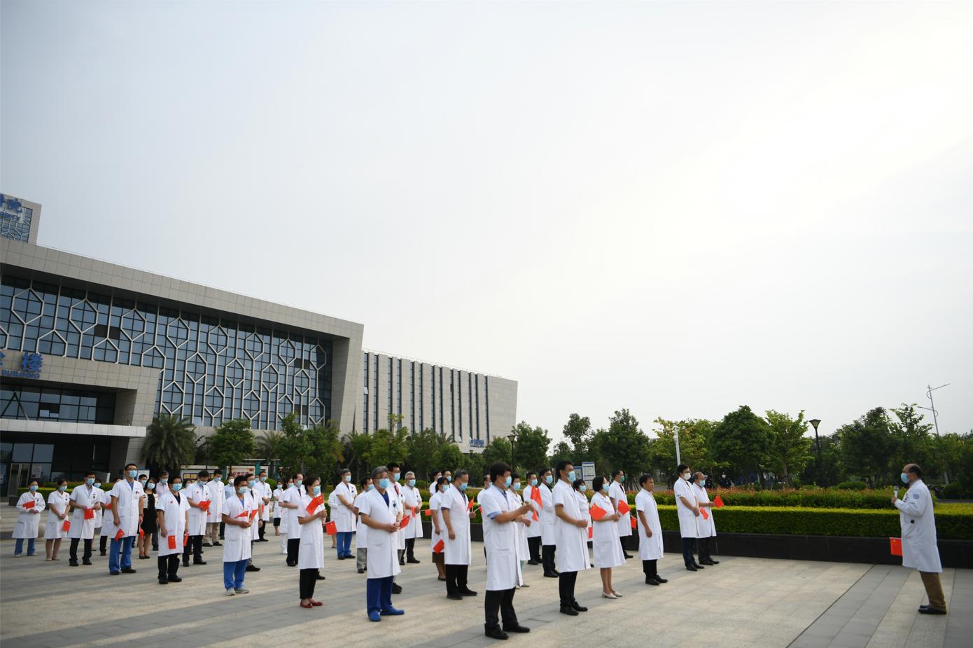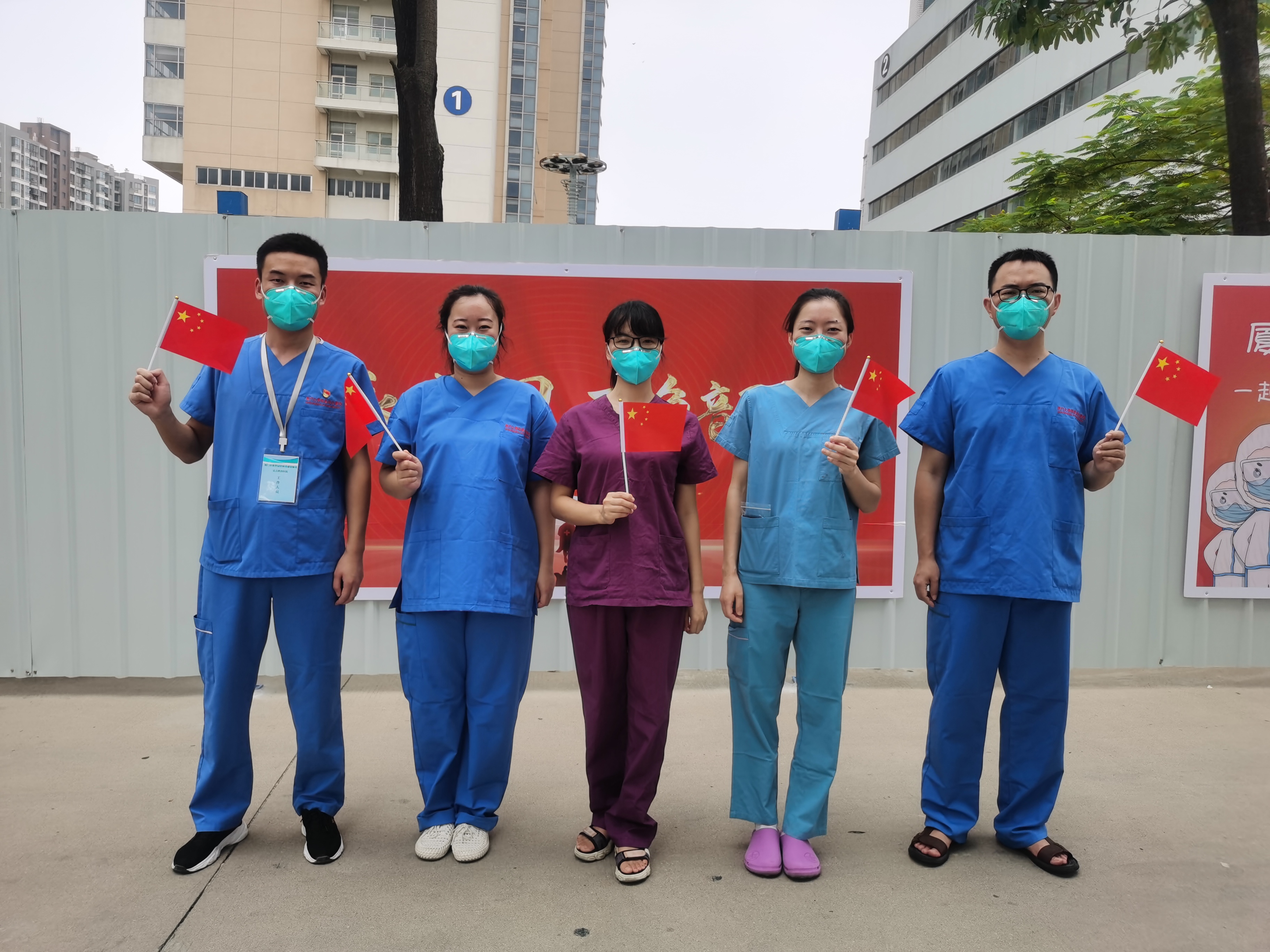 升旗仪式上,党委书记张建安、执行院长张国君祝福新中国成立72周年,同时表示我院作为厦门市新冠肺炎定点救治康复病区,目前和未来一段时间都将承担着艰巨的抗疫任务,丝毫不能松懈。感谢全院职工顾大局、勇担当,义无反顾参与抗疫工作。