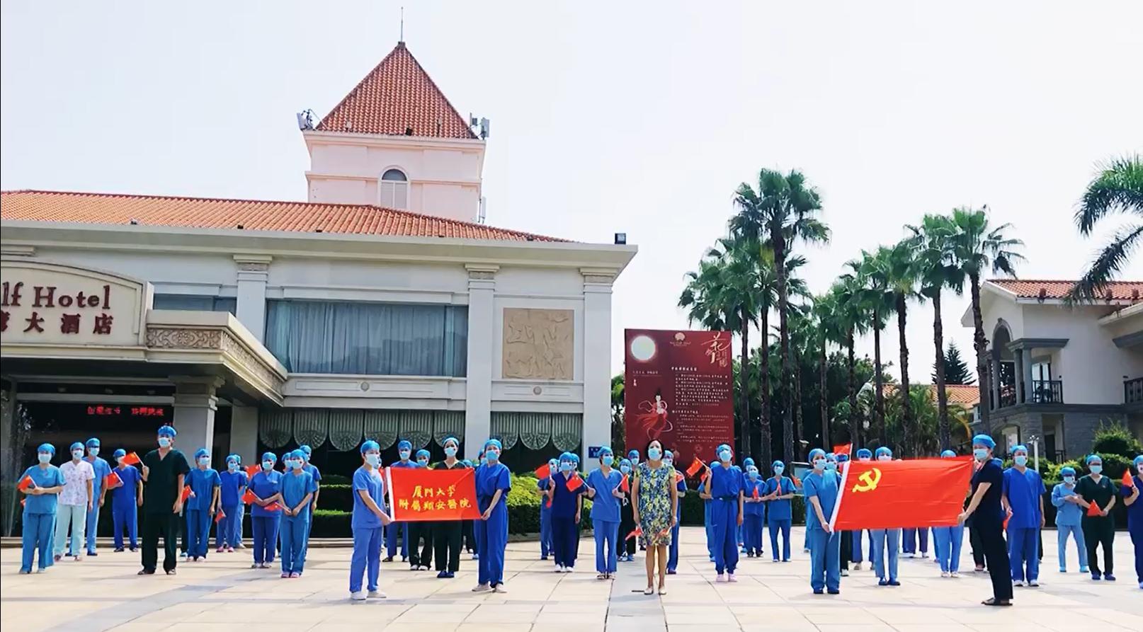 十月一日早上八点,厦门大学附属翔安医院门诊楼前,国旗飘扬、国歌雄壮。医院党政领导班子、中层干部,庄严肃立、行注目礼,见证这神圣、隆重的升国旗时刻,热烈庆祝中华人民共和国成立72周年。