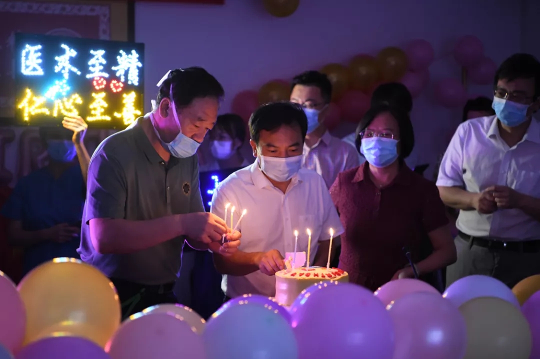 李健主任、贾赤宇主任、王新春主任、任立红主任、王威主任、陈晓玲护士来到现场为本科室的寿星送上祝福!