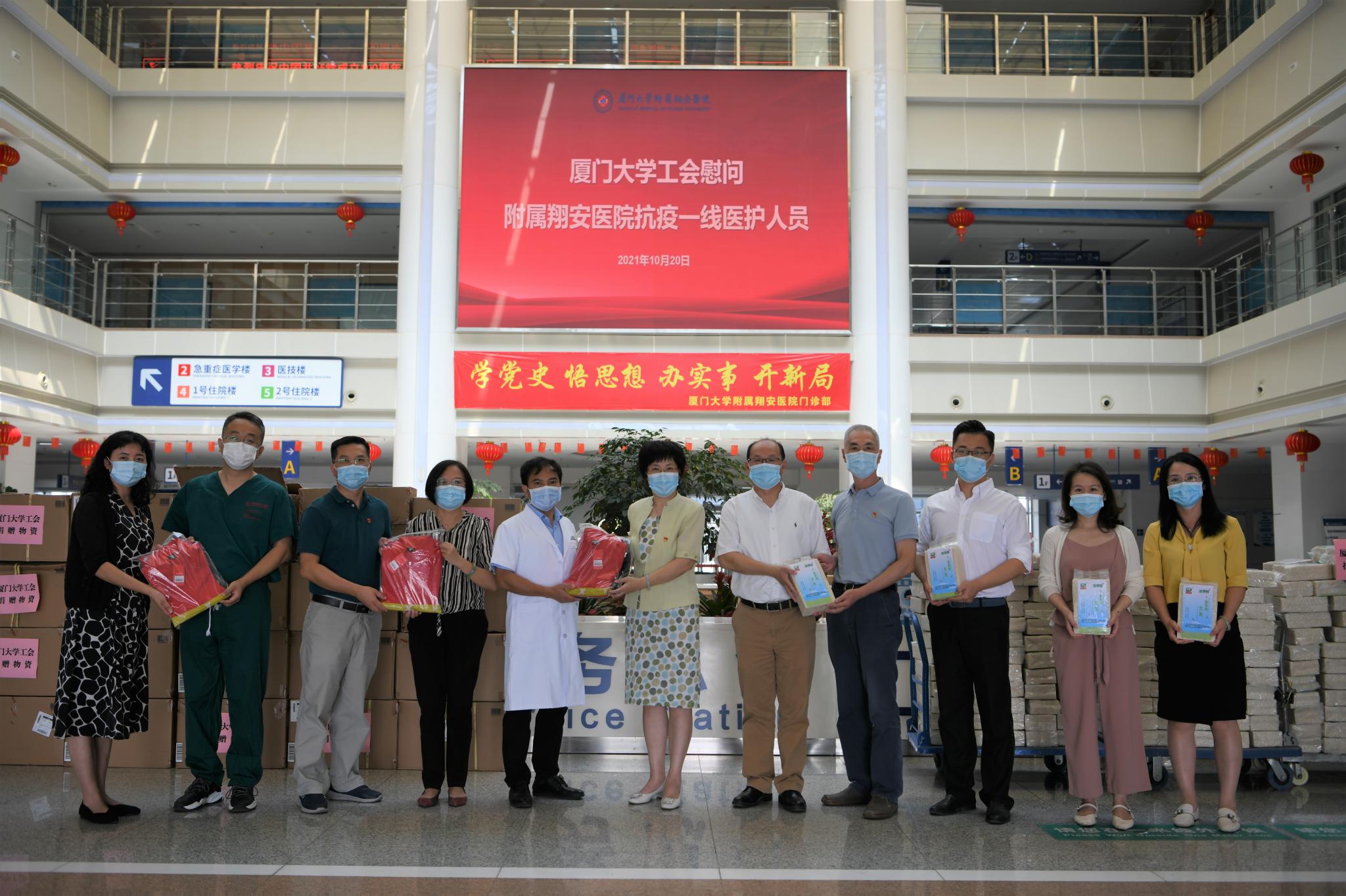 厦门大学副校长邓朝晖率校工会一行慰问附属翔安医院医护人员