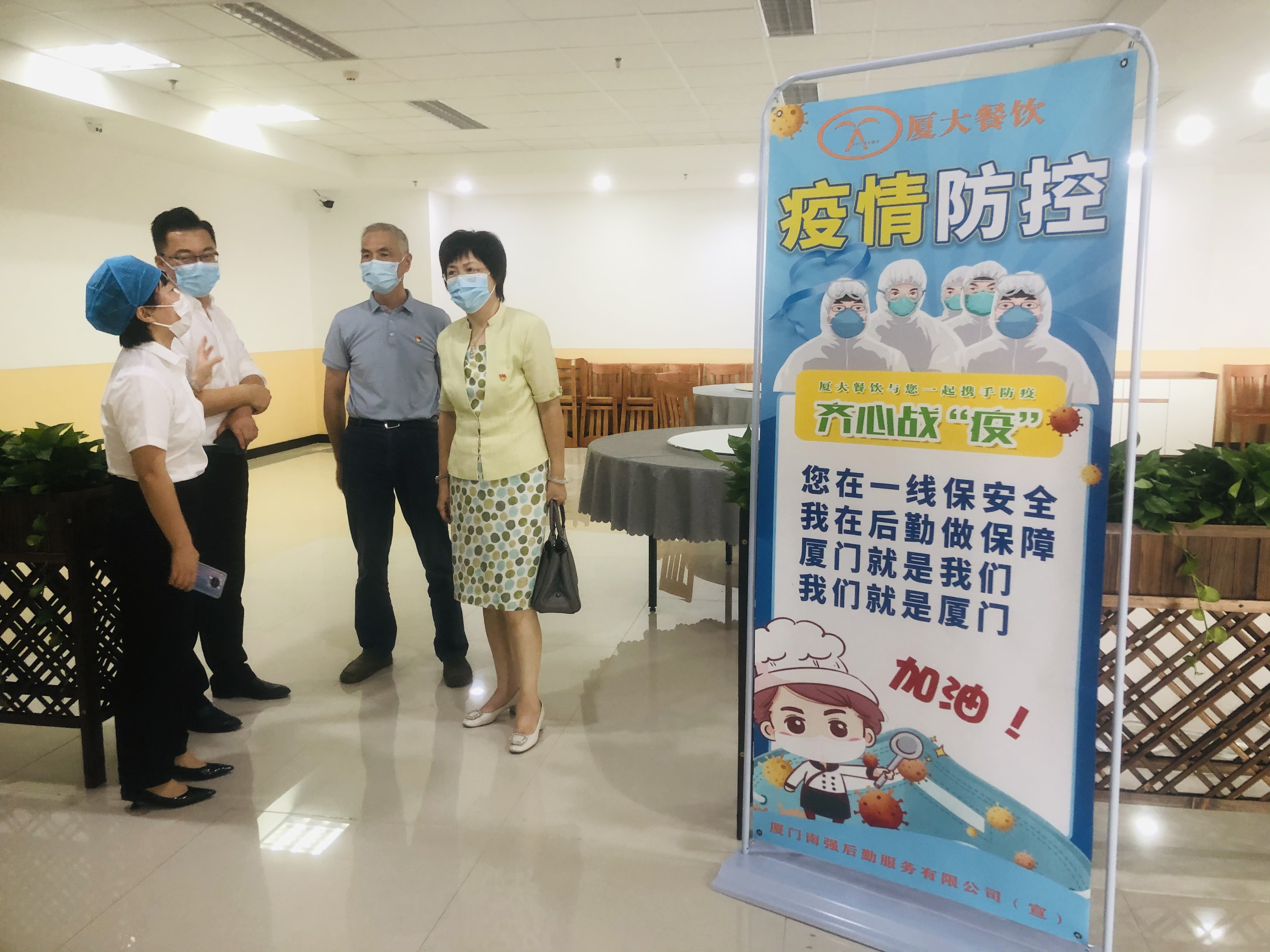邓朝晖副校长一行还到“厦大餐饮”厦大附属翔安医院职工餐厅调研,她肯定了餐厅的后勤服务保障工作,要求餐厅工作人员在疫情防控特殊时期进一步提高餐饮服务标准,为医护人员和隔离康复的新冠肺炎患者提供美味可口、营养丰富的菜品,使广大医护工作者和患者感受到“家的味道”,解除后顾之忧,为厦门防疫贡献厦大力量。