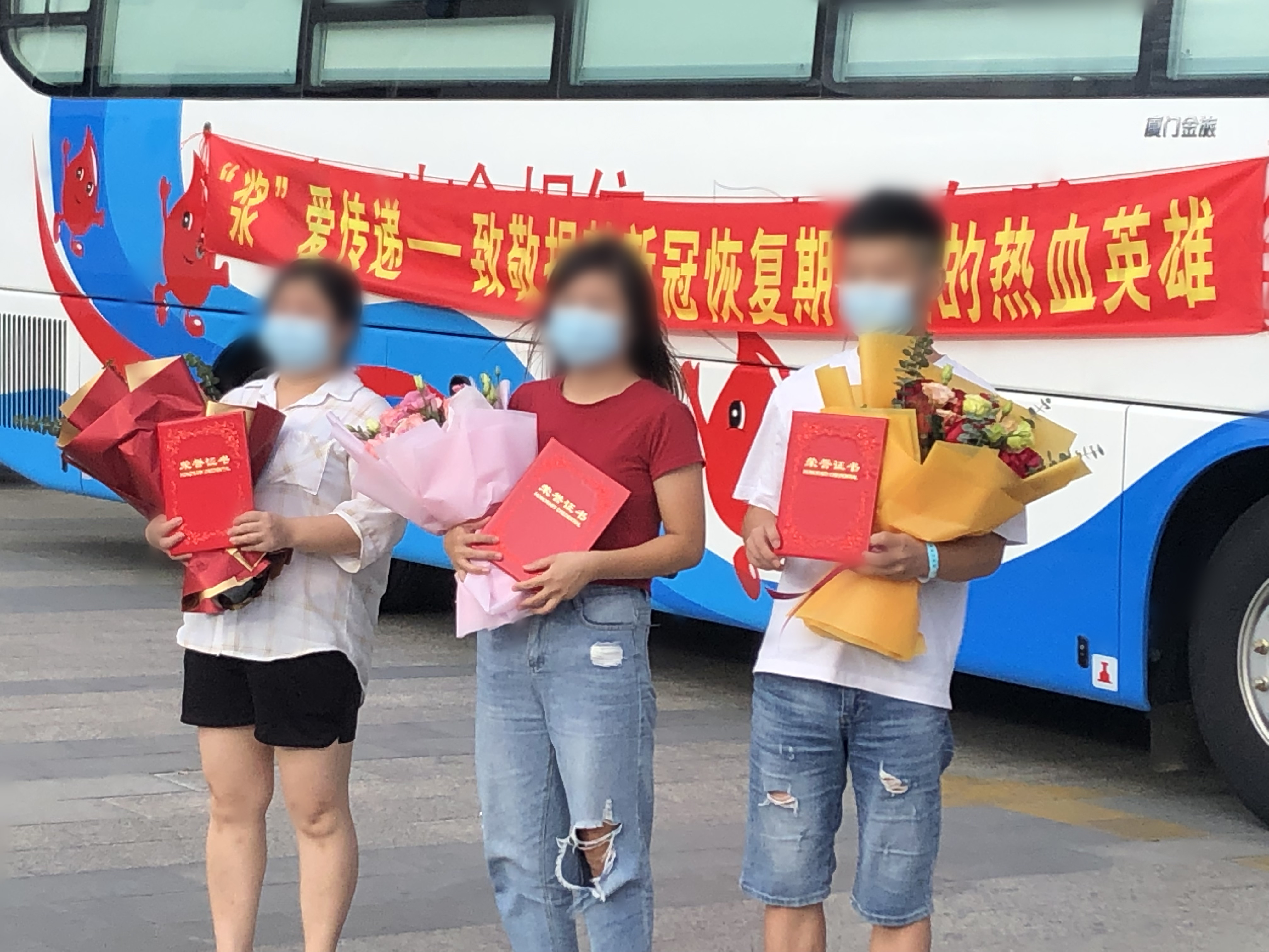 10月12日下午,在厦门大学附属翔安医院,3名新冠康复患者出院选择同时捐献恢复期血浆,将他们的爱心传递给仍在与病魔抗争的新冠患者。2位捐献者成功捐献400ml恢复期血浆,另一位捐献者因不符合要求,未能成功捐献。
