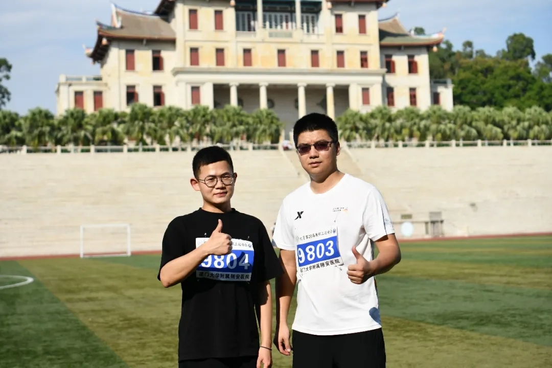 【男子青年一组100米 麻醉手术室杨文超、中医科李鹏飞】