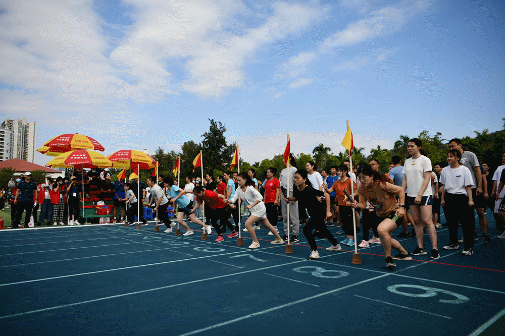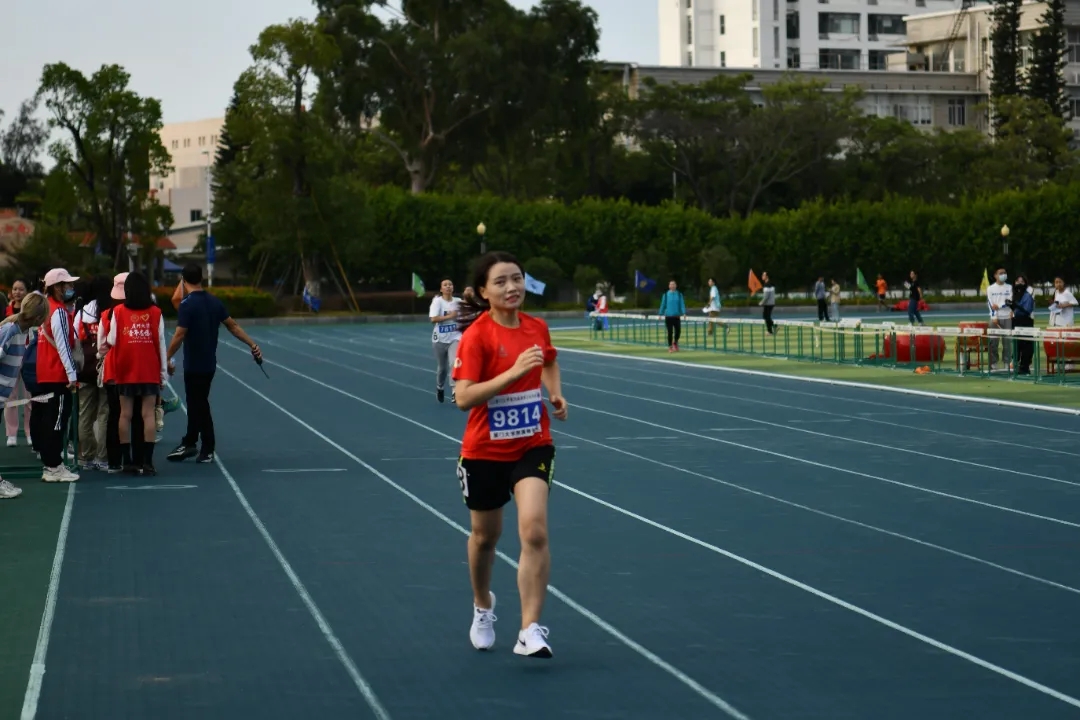 【女子教工组4x100米接力决赛 党办曾琳欢、放射科张欣雨、骨科科李丽思、康复科薛萍妮】