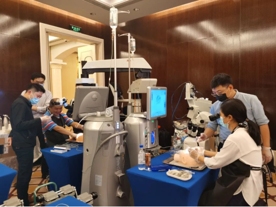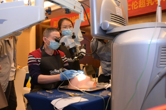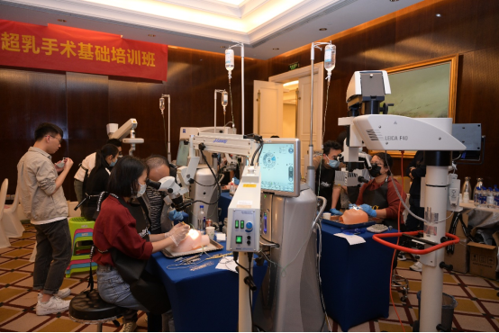 本届会议设有线下超乳培训班,同时更有动物眼实操,对年轻医师来说实属难得。庄静宜教授、郭健教授、林水龙教授、梅淑萍教授纷纷在大会上分享的自己的手术经验和技巧,高俐教授、姚鹏翔教授、郑红教授、林水龙教授、李世迎教授更是亲临实操现场,手把手进行手术指导,现场学习的医师络绎不绝,将实操时间多次延后,依旧感觉意犹未尽。