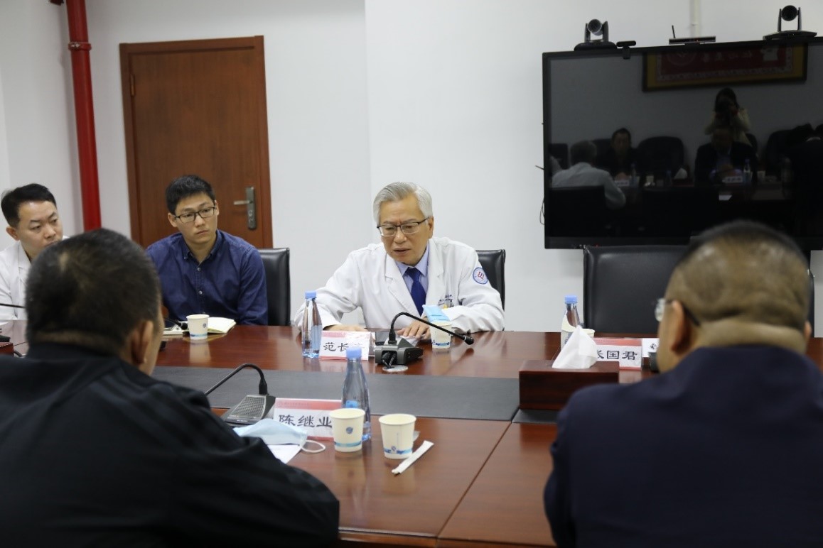 执行院长张国君对季旭东院长一行表示欢迎,他详细介绍了我院的建设发展规划、运营情况和未来发展目标,还重点介绍了今年厦门疫情期间,我院作为后备定点医院暨康复医院在抗击疫情中承担的重要工作和发挥的积极作用。