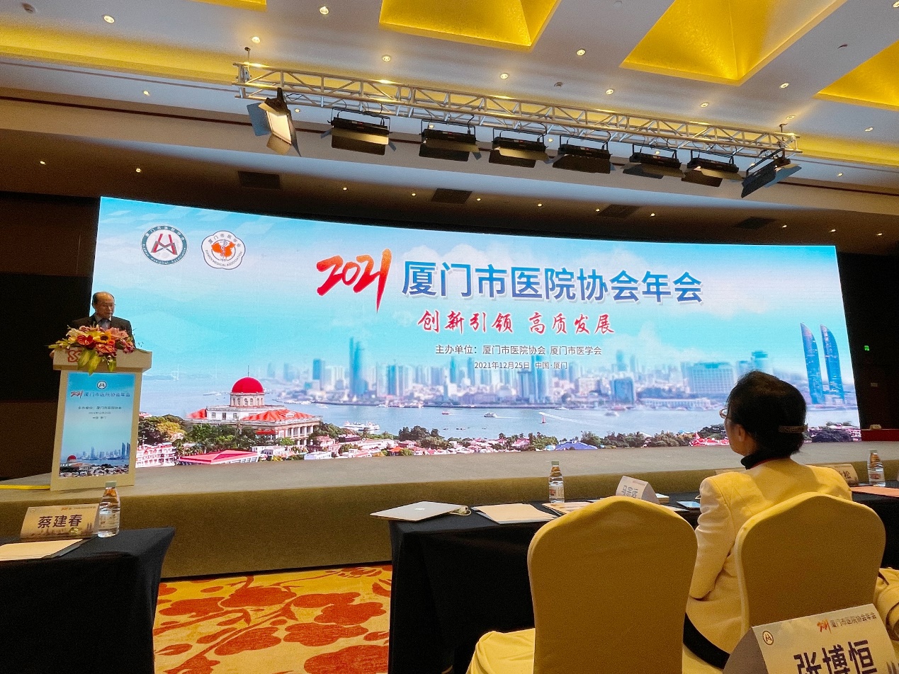 当北国已是山舞银蛇、原驰蜡象的时候,南海之滨的厦门依然风和日丽、鸟语花香,如同我们的心情一般。12月25日上午,以“创新引领,高质发展”为主题的2021年厦门市医院协会首届年会暨“年度十大医疗创新技术”颁奖仪式在厦门举行。我院执行院长张国君教授高度重视,携我院院乳甲外科人员、厦门市内分泌肿瘤精准诊治重点实验室以及硕博研究生20余人出席会议。