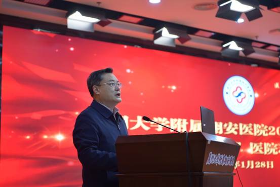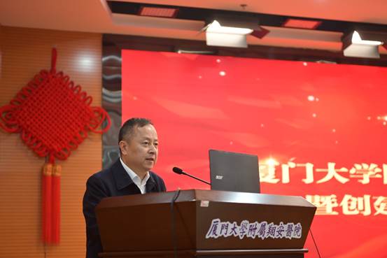 张荣校长在致辞中指出,附属翔安医院承担着厦门大学学科建设、教育教学和科学研究的使命。创建“三甲”医院是加快自身发展、增强医院综合实力的必由之路,具有重要意义。全院上下要围绕创三甲的总目标落实各项工作部署,以评促改,评建结合,促进医院的内涵建设,提高医疗服务水平,提升医院社会形象。学校将一如既往地支持和帮助附属翔安医院各项工作的推进与发展。