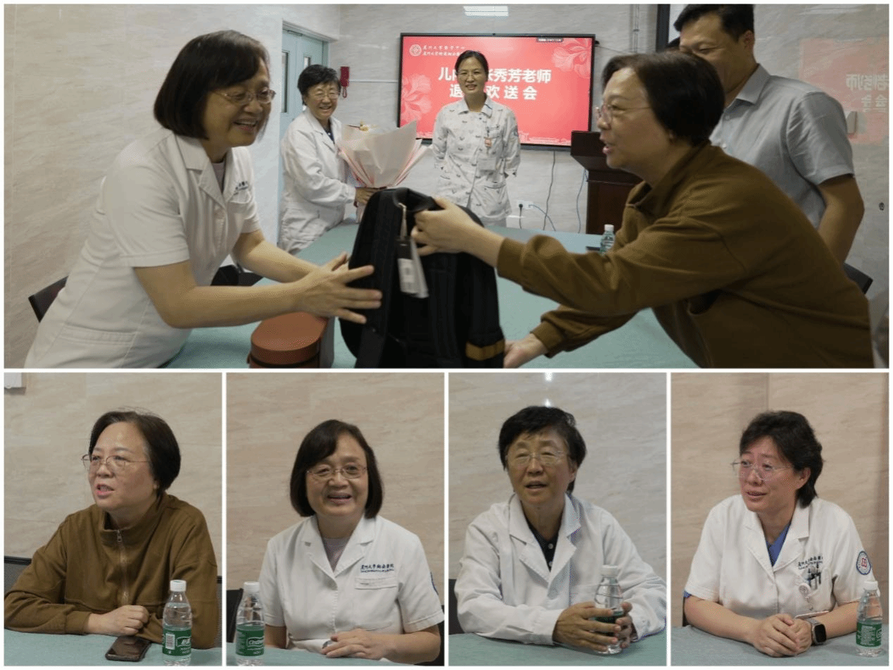 傅万里代表医院党政班子向张秀芳同志长期以来为医院作出的贡献致以崇高的敬意和衷心的感谢,并代表医院为她送上鲜花和礼物,激励儿内科全体成员要“赓续一份传承”,从她身上汲取奋进的智慧和力量,以更加务实的作风、更加坚实的本领,在践行救死扶伤的征程中书写更多温暖篇章。