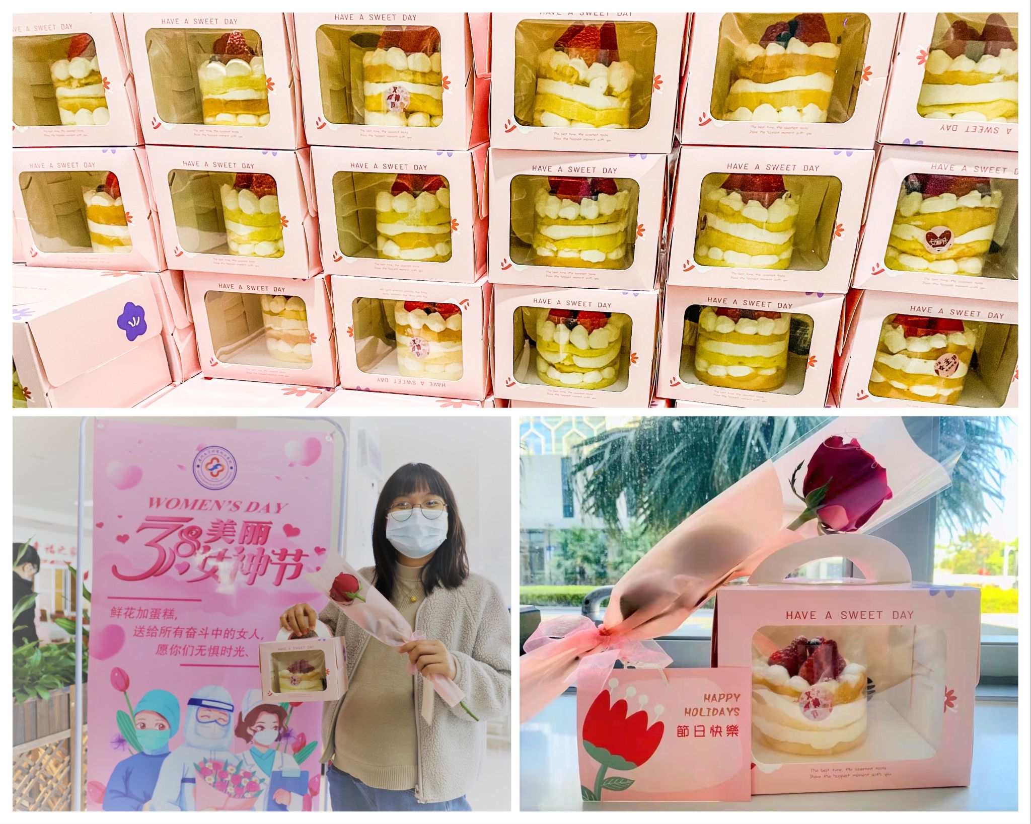 在节日当天,院妇委会开展了“浓情三八妇女节,鲜花蛋糕暖人心”主题活动,精心准备水果蛋糕和鲜花,为医院520名女教职工送上最甜蜜的节日礼物。