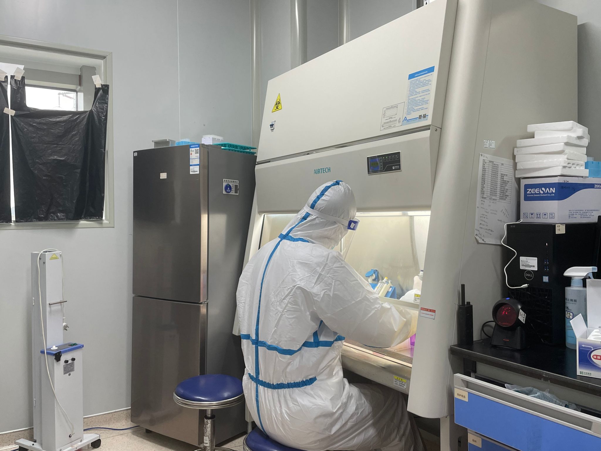 核酸检测的背后是医学检验科的辛勤付出。核酸检测实验室24小时灯火通明,医技人员全副武装,一丝不苟地进行着核酸标本检测。标本从接收到检测需要进行反应体系配制、标本拆包编号、核酸提取、扩增反分析等多个过程,检测环节繁多、风险程度高,工作细节繁冗,他们专心致志,有条不紊地进行工作,按时完成全部检测任务,为医院疫情研判和管控措施提供了有力依据。今年2月,我院医学检验科党员赵斌获厦门医师学会检验学科会的“最美核酸检验师”称号。