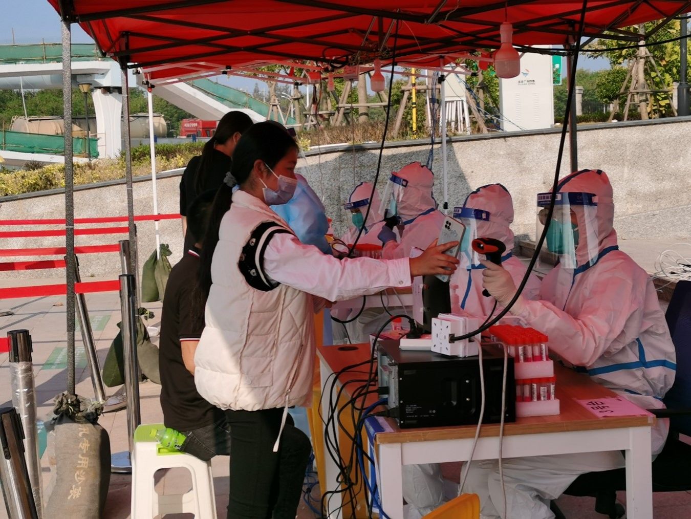 为了减轻核酸采样点工作压力,解决防疫一线人员不足问题,各科室主任抽调人员支援核酸检测,充实检测力量,各护士长亲临一线指挥,主动加入核酸检测队伍,增设核酸检测点。为了做好辅助工作,院党委号召机关党员干部在疫情防控中当先锋、作表率,迅速制定了志愿者支援方案。院机关广大党员干部纷纷响应,积极报名,下沉到一线协助开展核酸检测工作。很快,一个个身着蓝色隔离衣的志愿者便在检测点穿梭不停,动员宣传、维持秩序、录入信息……一项项工作有条不紊地开展。跑赢病毒、跑赢疫情,是全院机关党员干部的责任。他们坚守党员志愿岗,让党旗在防疫一线高高飘扬。据统计,截至3月20日,仅3个机关党支部就派出80余人次党员群众志愿者支援开展核酸检测,还有许多医护人员更是自发加入志愿服务队伍,自3月13日以来,院内核酸检测共计43631人次,单日采集量高达13000人次。