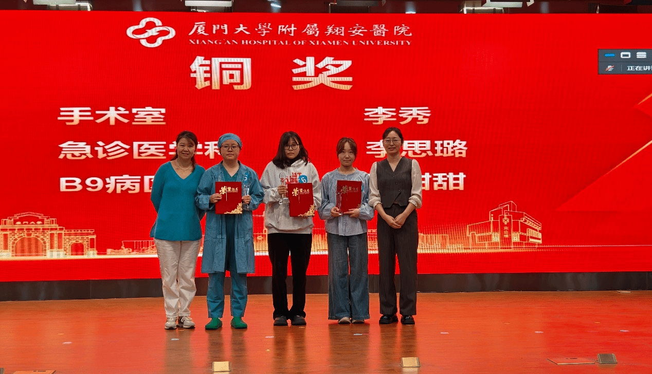 经过多轮对决,妇产科徐海平凭借出色表现摘得金奖;苏婉玲(B7病区)、陈雯欣(麻醉科)荣获银奖;李秀(手术室)等三人获得铜奖;李月凤(健康医学中心)等四人获优秀奖。