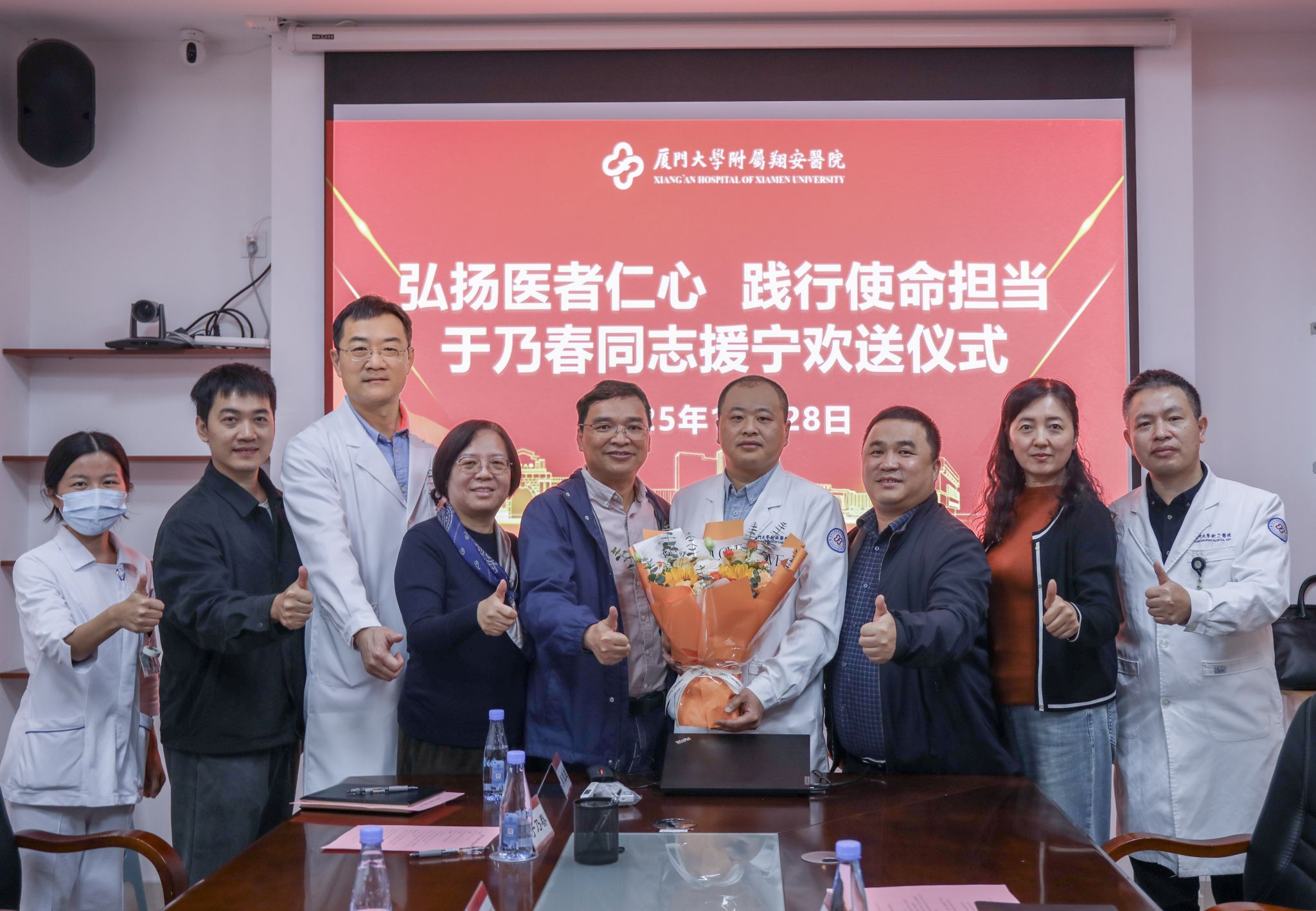 近日,我院隆重举行欢送仪式,为即将奔赴宁夏隆德开展医疗帮扶工作的骨科骨干医师于乃春送行。厦门大学办公室副主任陈国渊、医科建设与管理办公室副主任茹晓燕,医院党委书记左正宏、纪委书记傅万里、副院长刘宗泓以及骨科医护代表和相关职能部门负责人出席仪式。