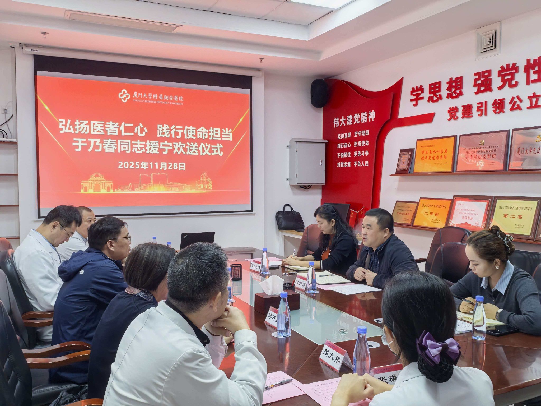 欢送仪式上,陈国渊和茹晓燕代表学校对我院在高质量落实厦门大学定点帮扶宁夏隆德县医疗任务中所作的贡献表示充分肯定,希望于乃春以主人翁姿态全身心投入帮扶工作,充分发挥专业特长,着力提升当地骨科诊疗水平,努力打造厦门大学对口医疗帮扶的示范标杆,同时要深入学习领会党的民族政策,尊重民族风俗,与隆德干部群众团结协作、携手共进,在医疗帮扶中促进民族团结,增进民族情感。学校和医院将切实做好后勤保障工作,提供供“有温度、全方位”的支持,让帮扶人员安心工作、无忧前行。