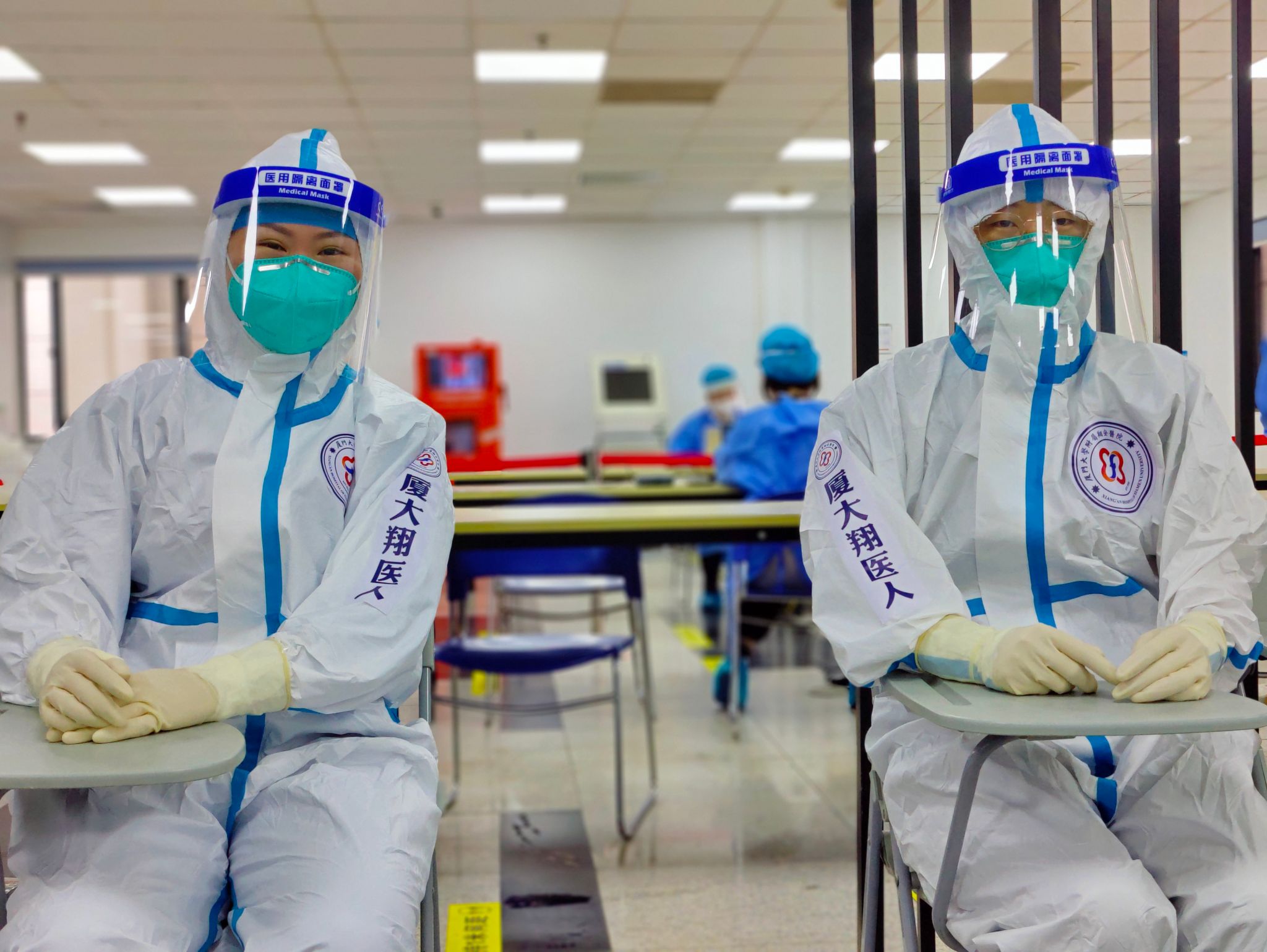 四天,厦大附属翔安医院派出六批100名医护人员奔赴核酸采样一线