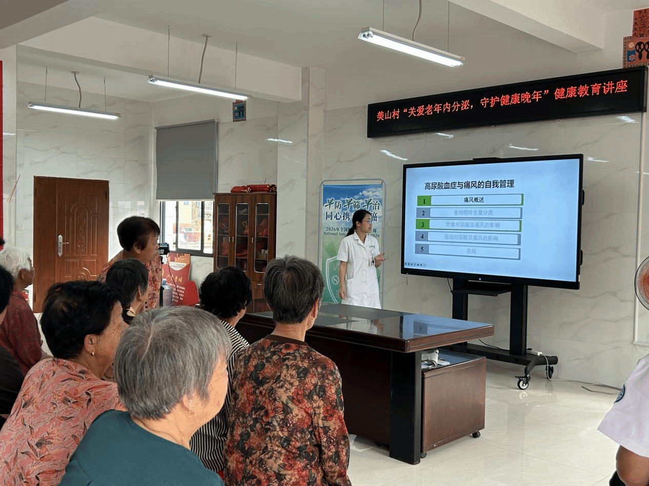 内分泌科谭舒文主治医师带来《高尿酸血症与痛风的自我管理》科普分享,针对痛风高发、日常管理误区等问题,从饮食控制、运动建议、用药规范、定期监测等方面给出实用指导,帮助居民科学管理慢病。