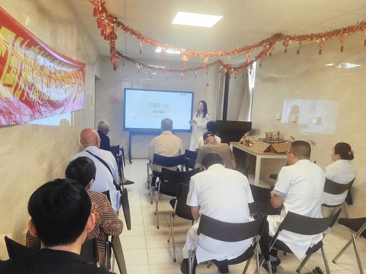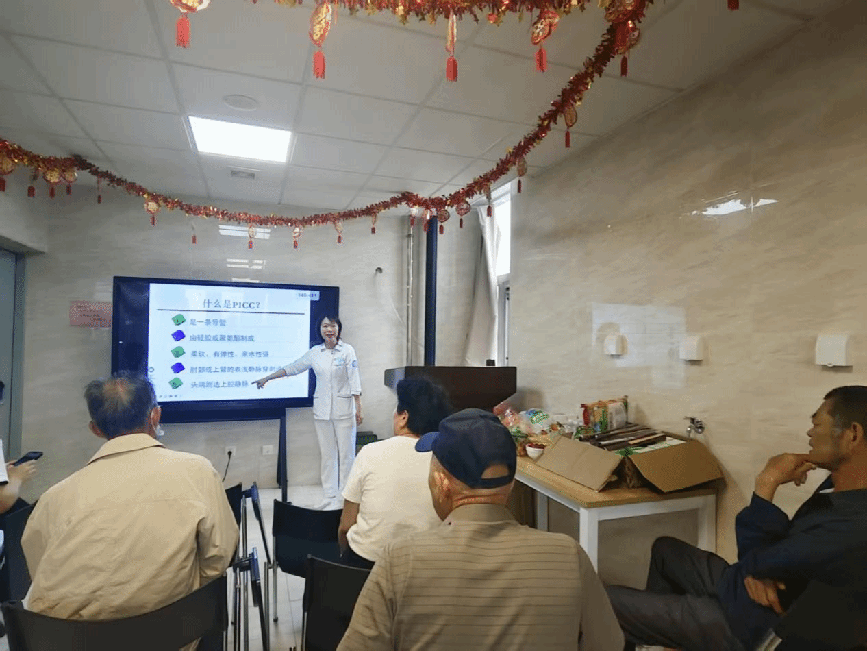 张丽琴副护士长就《PICC置管后健康宣教》进行细致讲解,内容涵盖导管日常维护、居家护理要点、常见并发症的预防与处理,以通俗易懂的方式指导患者做好自我护理,降低感染、堵管等风险,确保治疗顺利进行。