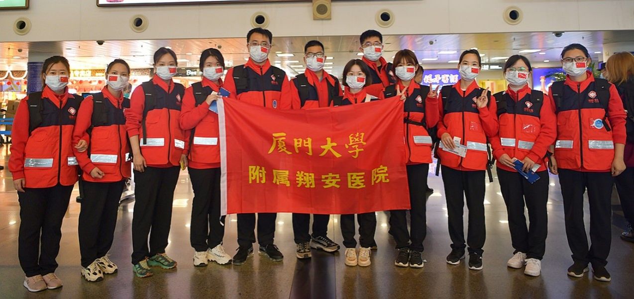 据悉,附属翔安医院第一批12名医护人员于4月7日到上海,4月9日在上海世博方舱医院H4病区开展工作。这12名医护人员中,有曾经援鄂、援杏的“老战士”,也有1995年才出生的年轻护士。整个队伍平均年龄30.3岁。队员们各司其职,有的参与院感工作,有的则作为一线护士参与救治医疗工作。第二批医疗队6名医护人员于4月17日到上海,正在积极参与工作。