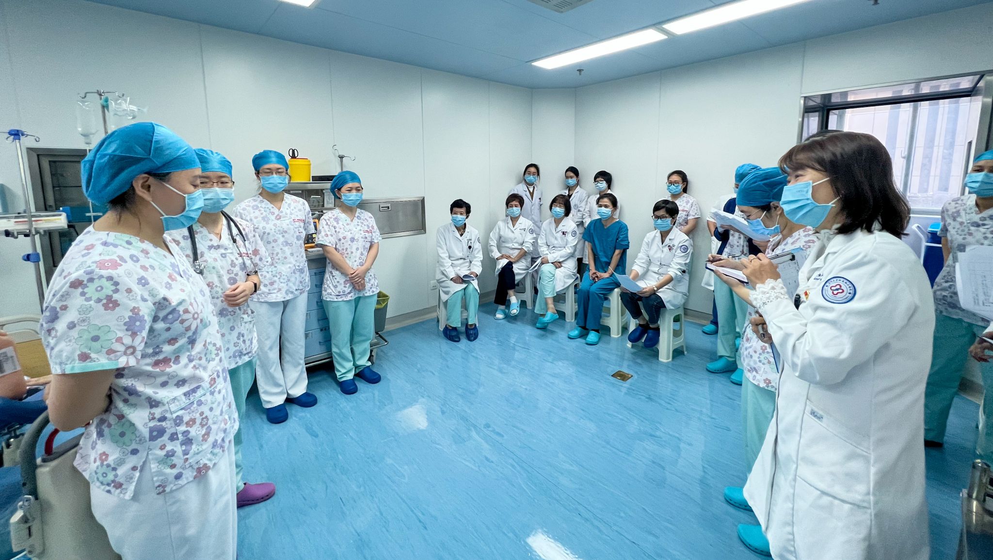 20日中午,妇产科全体医护人员及国家临床教学培训示范中心副主任张莉莉在产房集合,模拟患者术中发生羊水栓塞进行的应急预案演练正式开始。这次演练准备充分,医护人员各司其职、反应迅速,各环节衔接顺畅,较好地完成了羊水栓塞的急救及心肺复苏的演练。此次演练提升了妇产科医护人员识别羊水栓塞早期症状及诊断能力,增强了防范风险意识,对提高危重患者的抢救成功率、保证医疗安全发挥了重要作用。