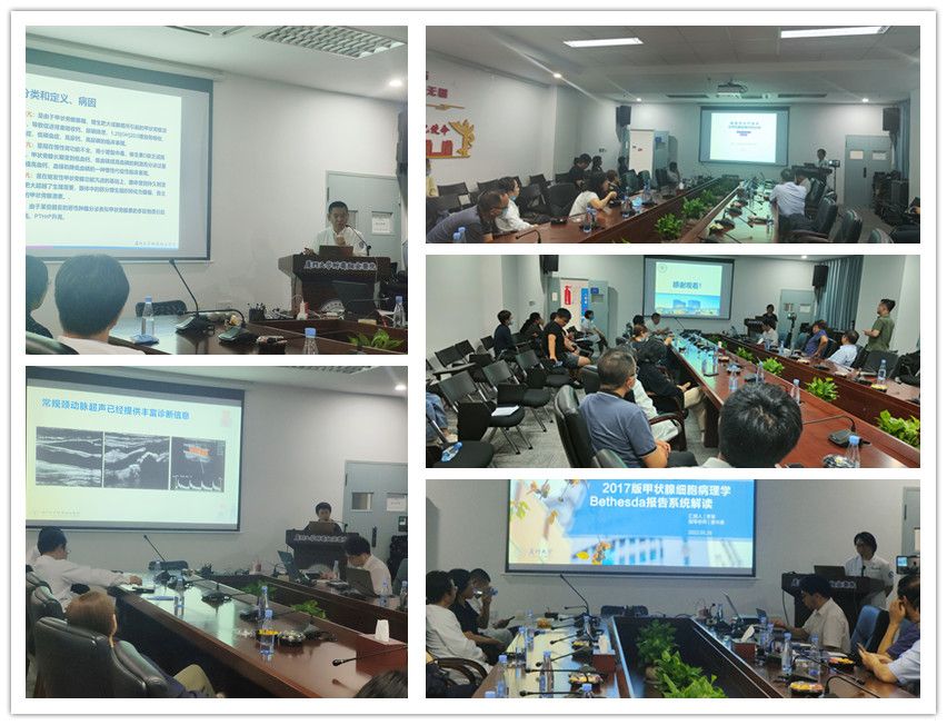 随后,我院内分泌科主任王威教授就甲状旁腺机能亢进症的诊断与治疗作精彩演讲;核医学副主任潘卫民对核医学技术在甲状腺疾病中的应用作具体分析,病理科主任唐美华教授、李慧医师阐述了甲状腺穿刺细胞学的病理诊断;超声科齐海燕主治医师讲解了脉搏冲对颈动脉硬度评价方面的应用价值。