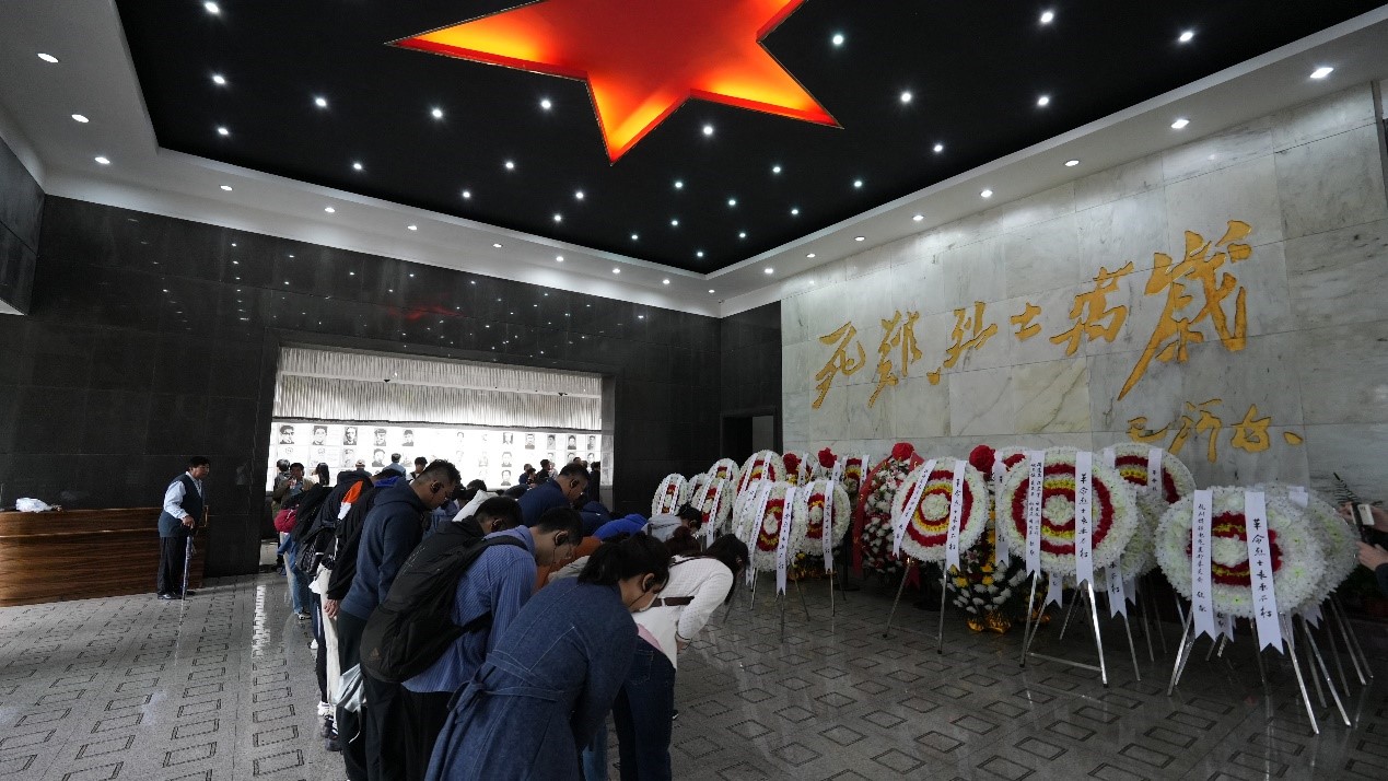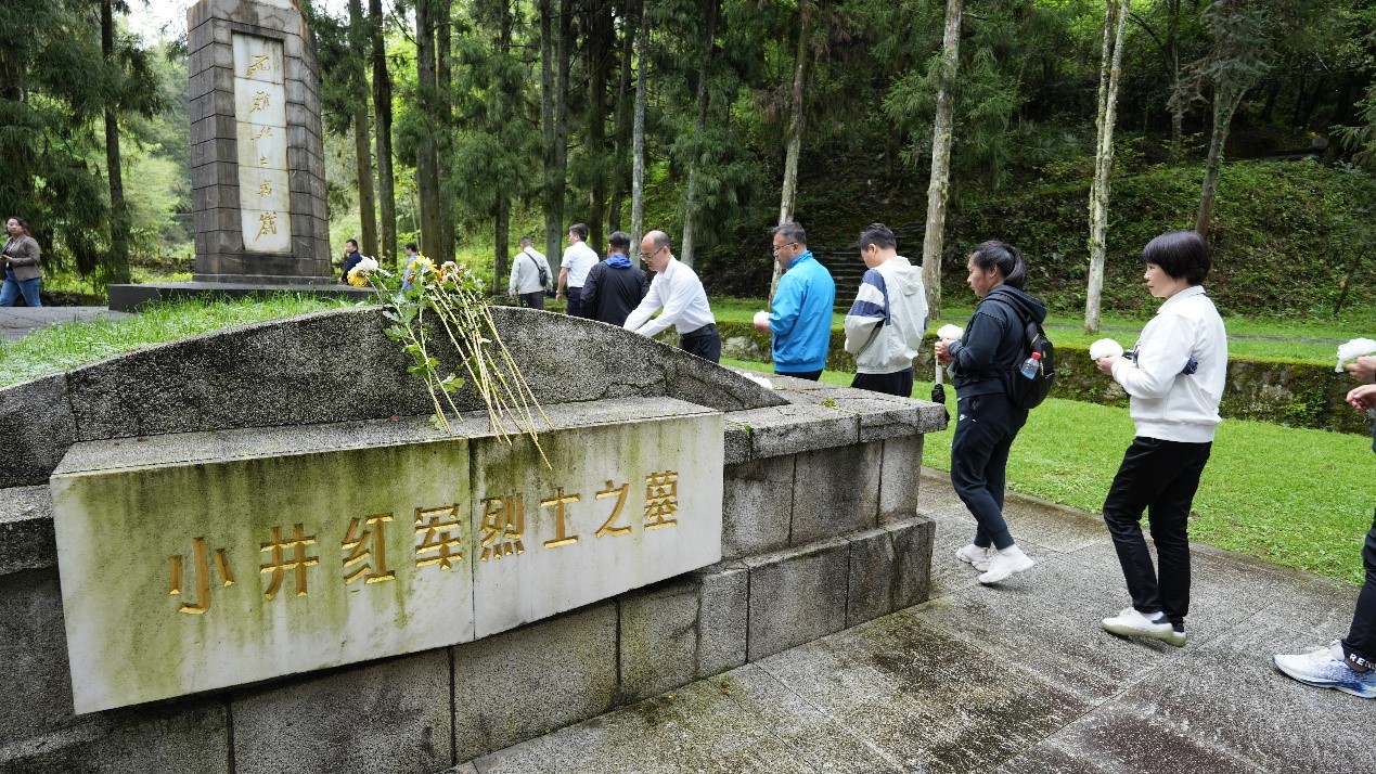 在井冈山革命烈士陵园,院党委书记左正宏带领党员们重温入党誓词,向先烈们敬献花圈、鞠躬默哀。