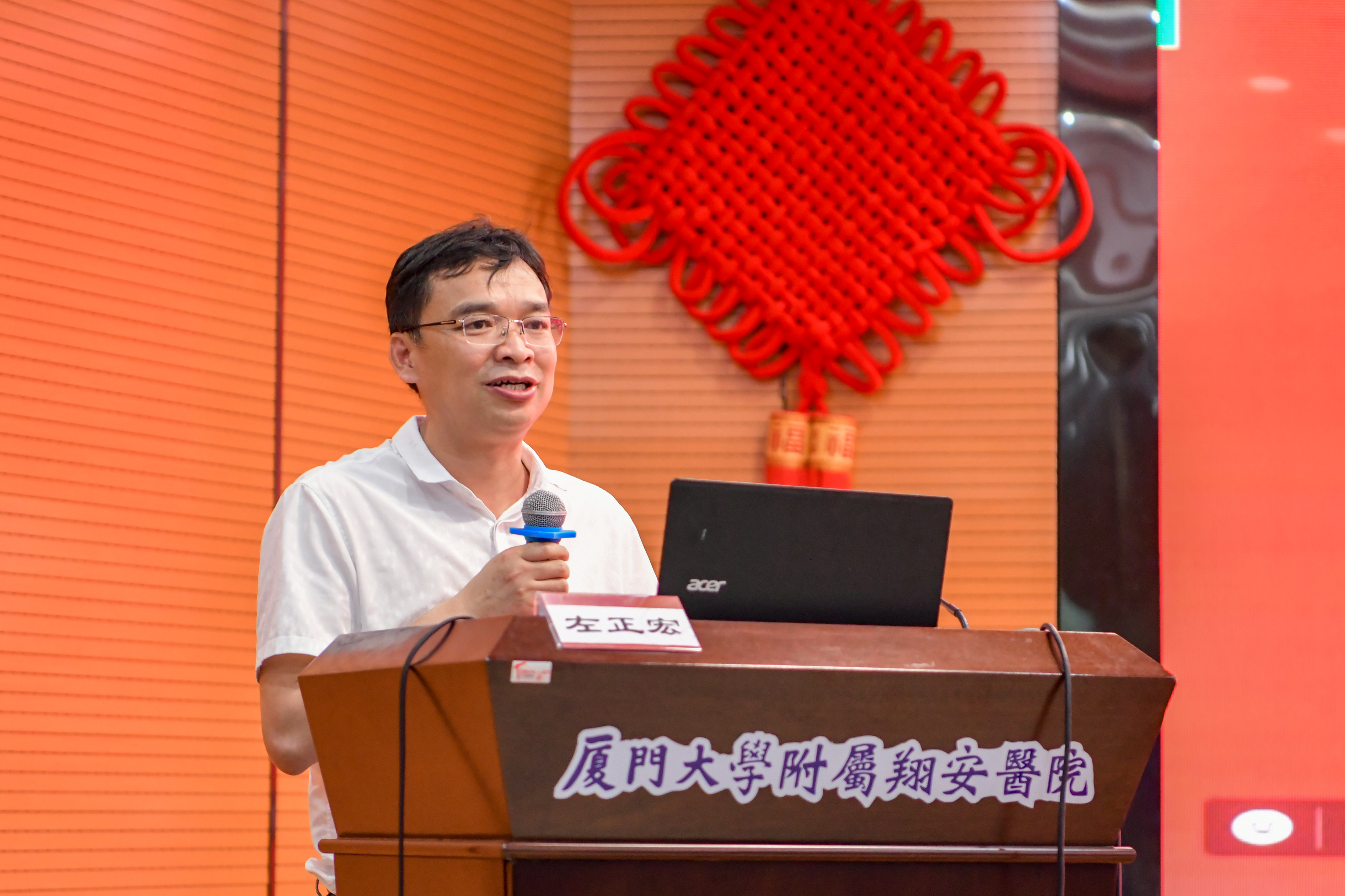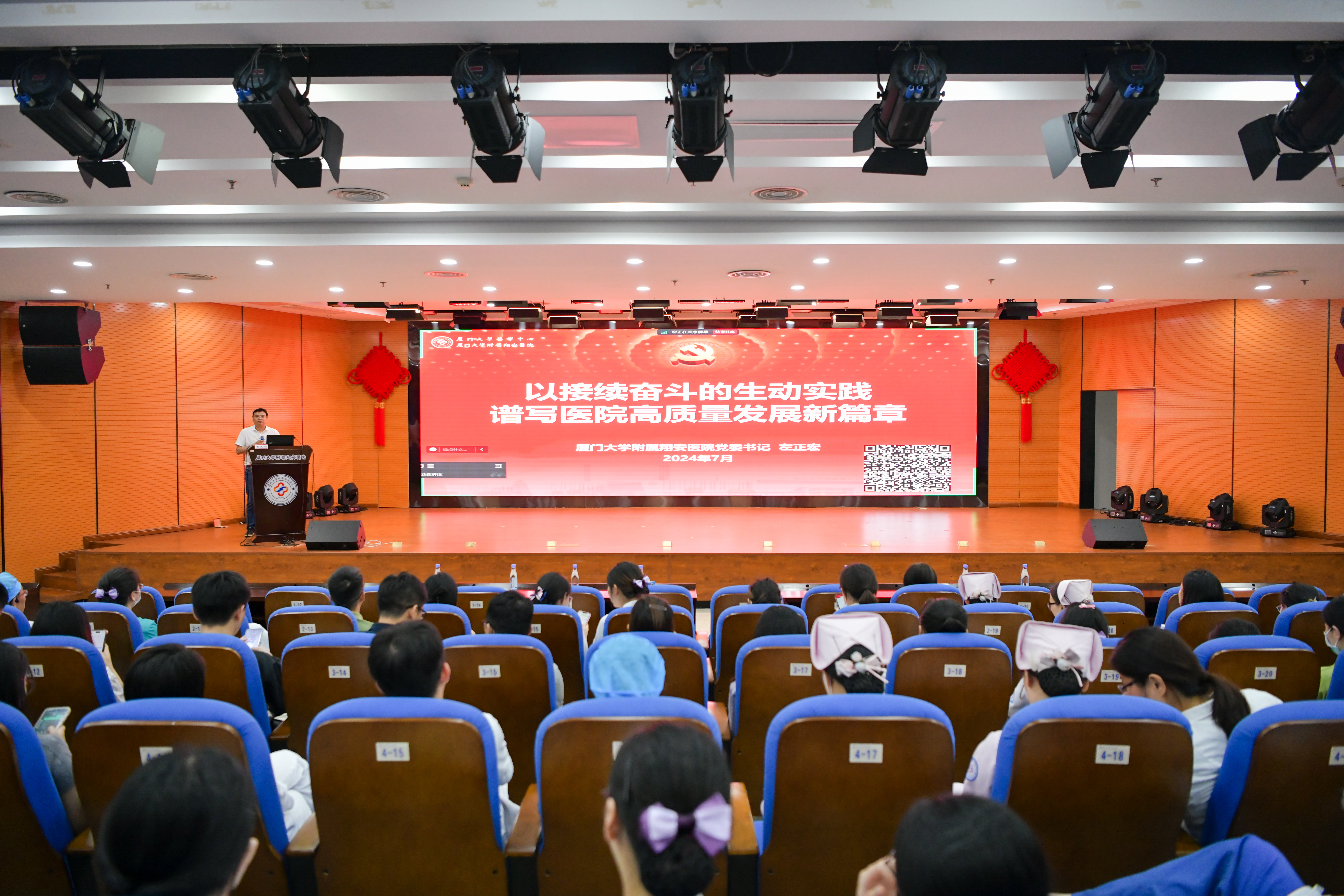为庆祝中国共产党成立103周年,扎实推进党纪学习教育,7月1日,厦门大学附属翔安医院党委书记左正宏讲授题为“以接续奋斗的生动实践,谱写医院高质量发展新篇章”的专题党课。院领导、党支部书记、全院党员参加党课学习,思明院区党员在分会场通过视频直播收看。