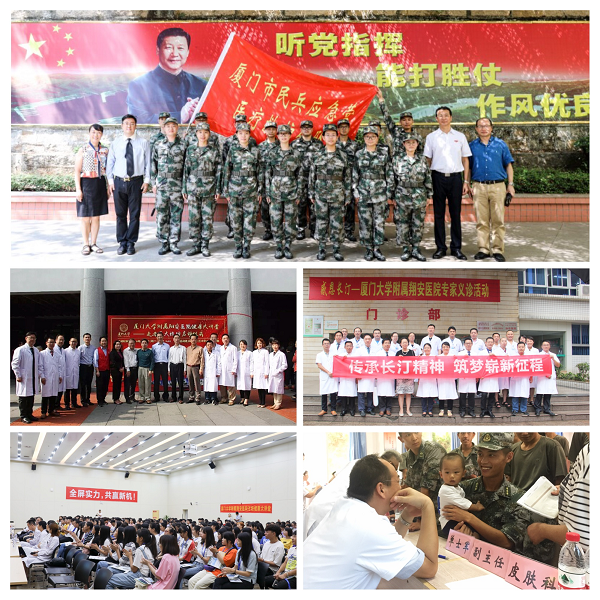 面向社会,把力量凝聚到护佑百姓健康中去。校第十一次党代会上提出要“加快推进附属翔安医院建设,关心师生身心健康,不断提升师生的幸福感”的战略部署,赋予了我院庄严使命,吹响了医院建设迈向新征程的号角,激励和鼓舞着广大医务人员全身心投入到医教研等各项工作中。医院响应校党委的号召,采取各种措施,把力量聚集到护佑百姓健康中去。健康大讲堂走进厦门大学校园开展科普活动,服务师生;专家义诊走进厦港街道、中华街道等单位,服务百姓;成立“厦门市民兵应急营医疗救护分队”,开展军民融合活动走进军营,服务官兵;赴长汀县对基层医疗单位进行技术帮带,服务红色革命老区。医院开展的全方位、多层次、多途径、多学科、立体化的各项活动在社会各界产生了广泛影响,获得了高度赞誉。