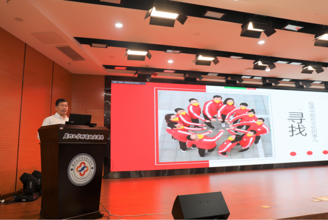 党委书记吴立武以“厚植家国情怀,弘扬爱国主义精神”为主题,通过讲述三组故事和三个启发带领大家重温了广大党员干部在疫情防控斗争中践行初心使命的生动事迹,从援鄂医疗队、支援杏林医护人员以及医院发热门诊医护人员“舍小家、为大家”的坚守中,感悟到了“担当精神是家国情怀的实践向度”,从武汉校友和澳洲校友为我院捐款捐物中,感悟到了“爱国报国,是厦大校训的生动诠释”,从校党政领导的关心关爱,海洋与地球学院联系连江渔民捐赠的鲍鱼罐头,公共卫生学院捐赠的50套防护服以及厦门医学院口腔医院捐赠的30套防护服中,感悟到了“同舟共济、守望相助是中华民族得以屹立世界民族之林的重要精神品质”,赞扬了共产党人勇往直前的伟大人格力量和深厚的家国情怀,为全院党员上了一堂振奋人心的战“疫”微党课。