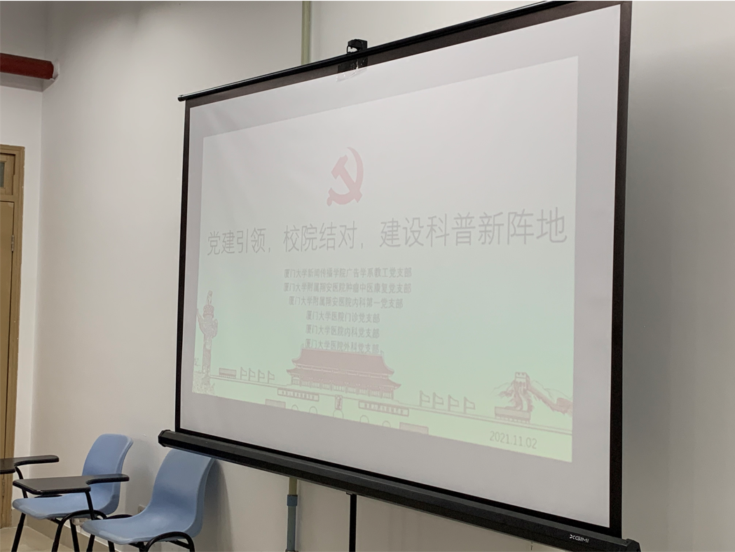 11月2日下午,我院在思明院区(厦大医院)5楼会议室举办了党建引领,校院结对,建设科普新阵地——厦门大学院系结对党支部共建活动,除了两个结对的共建支部——我院肿瘤中医康复党支部和厦大新闻传播学院广告学系教工党支部,参加此次共建活动的还有我院内科第一党支部,厦大医院门诊党支部、内科党支部和外科党支部。