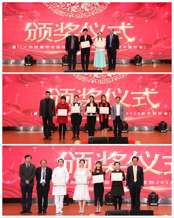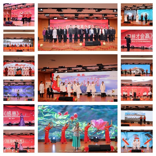 厦大医院体检中心为大家带来了精彩纷呈的魔术表演,不断变化让人大开眼界;乳甲外科、眼科和耳鼻喉头颈外科带来的三句半《一起来说咱医院》,以传统曲艺的表现形式展现了翔安医院的建设情况,诙谐幽默的语音、接地气的表演,使整个现场笑声连连;泌尿外科、内分泌科和肾内科的朗诵《生命礼赞》,慷慨激昂地展现了医务工作者敬畏生命,大爱无疆的精神;口腔科的朗诵《腾飞吧,翔安医院》,催人奋进,讴歌了医护人员勇立潮头、再续辉煌的决心和信念,将晚会气氛推向高潮;感染科和胸外科带来的舞台剧《嘉庚圆梦记》,以穿越现代的形式让校主陈嘉庚先生欣赏翔安医院的风采,激励着我们要为嘉庚先生的“百年医学梦”不断奋斗;此外,院组委会还邀请到了著名艺术家张虹霞女士和李拉先生,为我们带来了《感恩》和《鼓浪屿之波》,深情表达了对医务工作者深深敬意;最后,联欢会在院领导、各部门、科室负责人带来的大合唱《团结就是力量》的嘹亮歌声中圆满落下帷幕,铿锵有力的歌声预示着翔安医院在院领导的带领下,奋进新时代,筑梦新征程。