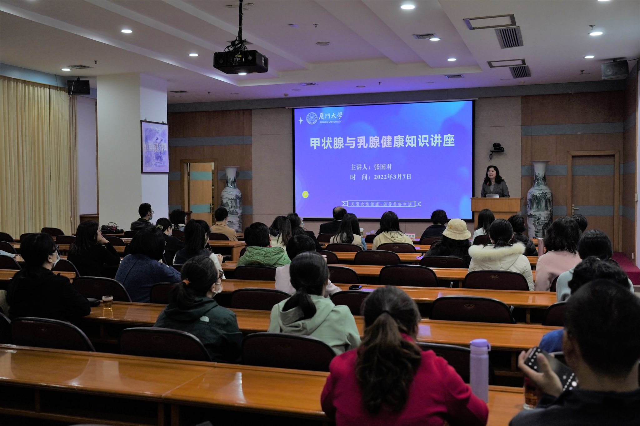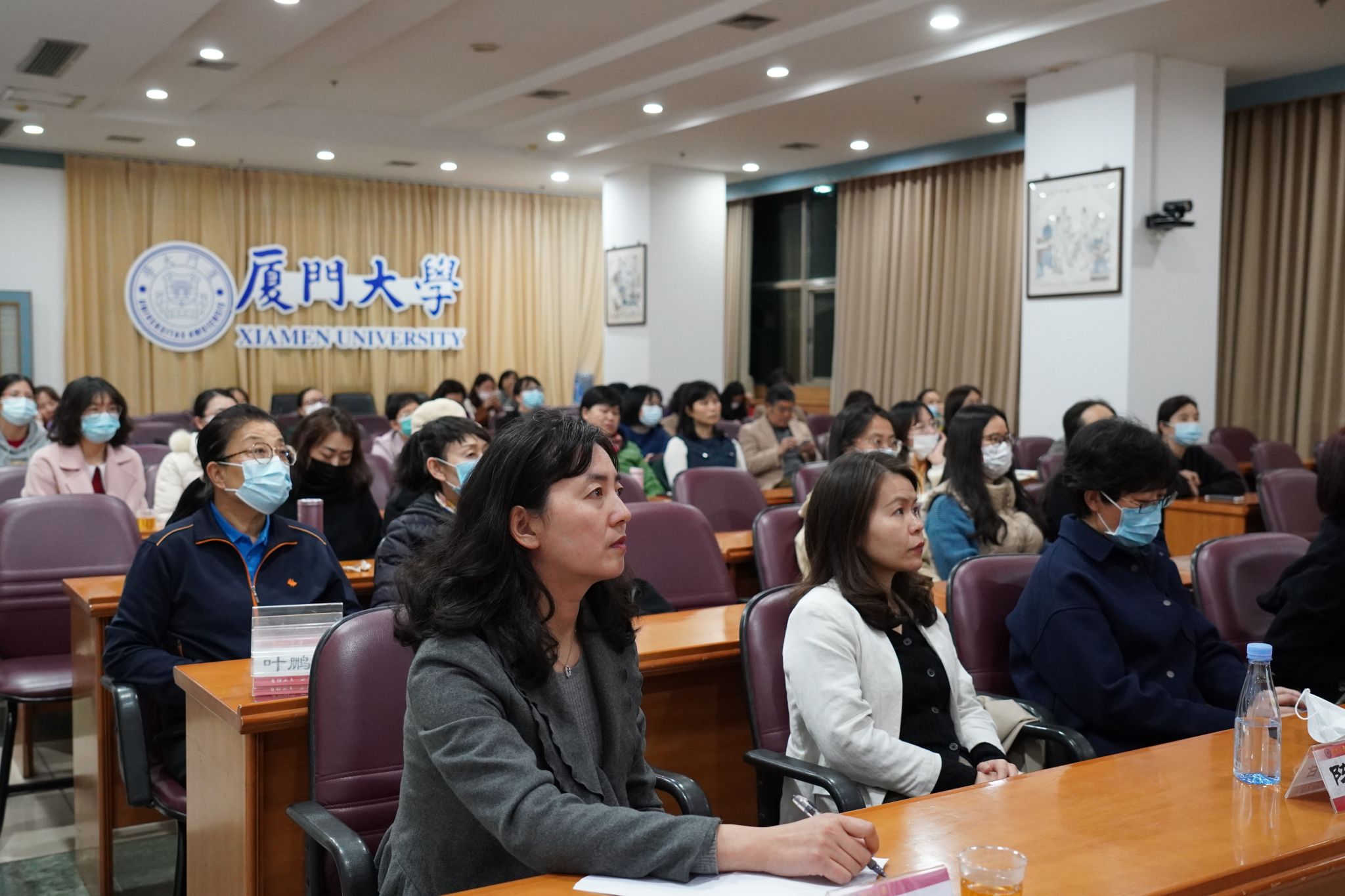 3月7日晚,“关爱女性健康,倡导和谐生活”主题讲座在厦大思明院区颂恩楼会议室220举行。校工会副主席茹晓燕及附属翔安医院执行院长张国君,党委副书记、纪委书记傅万里,工会主席付丽娟,妇委会委员、院办副主任陈甜等出席了本次活动。近八十名来自各单位的女教职工报名参与活动。活动由校工会副主席茹晓燕主持。