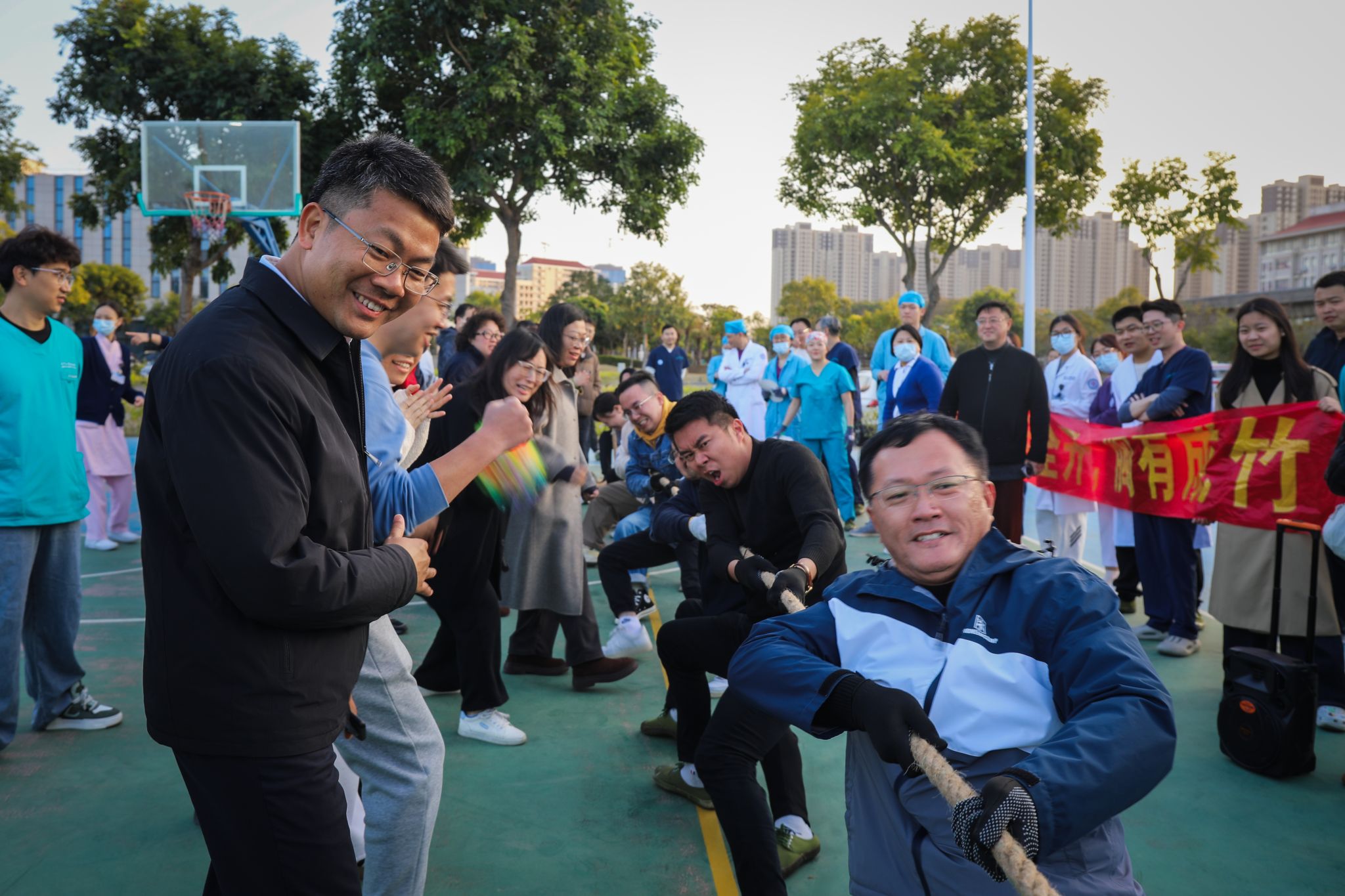 纪委书记龚树丰为各支队伍加油助威,将现场气氛不断推向高潮。副院长卜梁更是身体力行,作为队员直接参与到激烈的角逐之中,充分展现了院领导与职工同心同德、并肩奋斗的风采。活动由工会主席付丽娟主持。