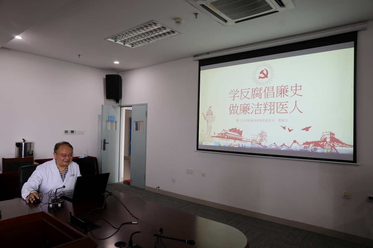 6月28日,副院长程继东以《学反腐倡廉史,做廉洁翔医人》为主题,为内科第一党支部全体党员上党课。程继东系统介绍了新民主主义革命时期、社会主义革命和建设时期、改革开放40年以来各个时期的反腐倡廉工作,他希望大家通过学习中国共产党百年反腐倡廉史,结合医院工作实际,能够充分认清医疗卫生系统不正之风和腐败问题的严重危害性,自觉强化医德医风和行业作风建设,努力营造以清为美、以廉为荣、担当作为、清正廉洁的干事创业氛围,着力推进医院廉政建设,做一名清正廉洁的翔医人,以医院高质量发展的优异成绩庆祝建党100周年。