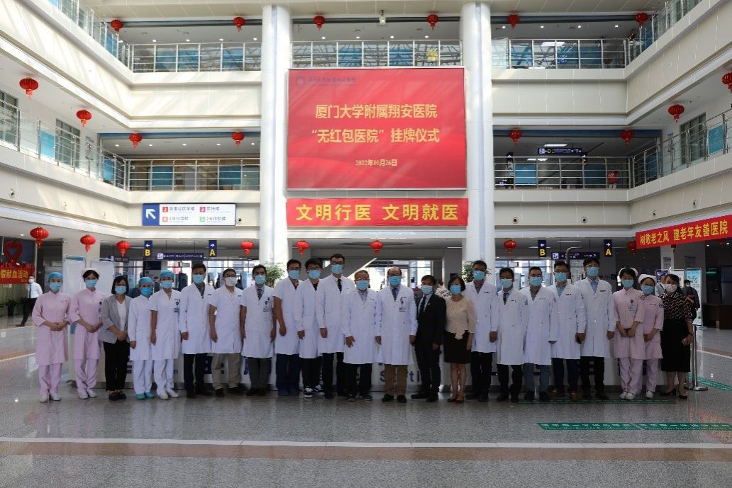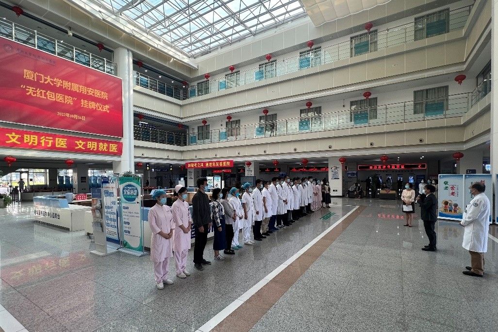 根据厦门市卫健委统一部署,2022年10月26日上午,厦门大学附属翔安医院举行“无红包医院”挂牌仪式,并向社会公布监督举报电话。院领导班子、重点岗位人员、医务人员代表参加仪式,仪式由院党委副书记、纪委书记傅万里主持,院党委书记张建安、执行院长张国君致辞。