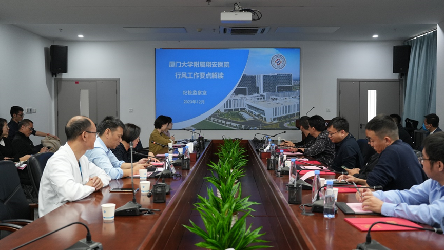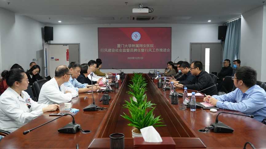 会上,邱兴烽向社会监督员介绍了医院基本概况、学科建设、队伍建设、未来规划等情况。他表示,厦大翔安医院作为一所年轻的医院,在医疗技术和服务质量持续提升的同时,更需要广泛听取各界对医院工作的意见和建议,补齐服务上的不足之处,不断推动医院行业作风和医德医风建设工作,更好履行为人民服务的宗旨。
