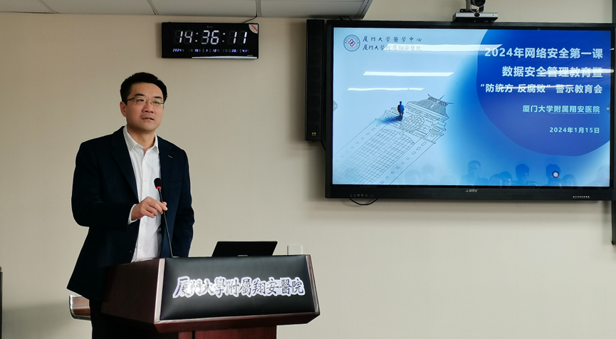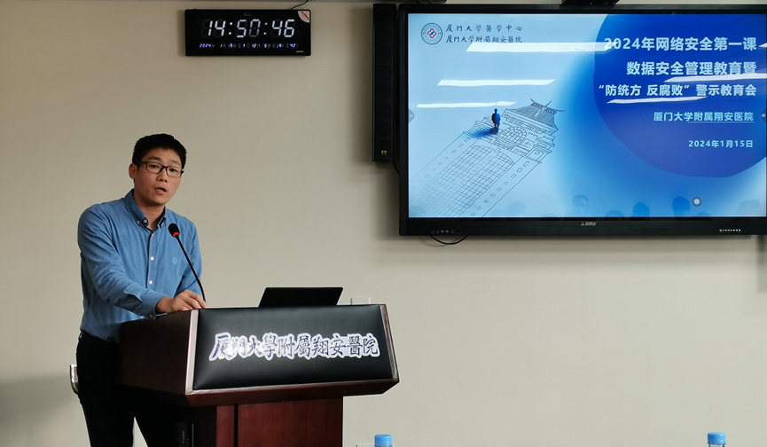 为进一步加强医院数据安全管理、提升关键技术岗位人员“防统方、反腐败”意识,1月15日下午,我院召开2024年网络安全第一课——数据安全管理教育暨“防统方、反腐败”警示教育会。纪委书记傅万里,院长助理刘宗泓,纪检监察室、信息中心全体工作人员以及第三方服务单位代表参加会议。会议由信息中心副主任邱春旭主持。