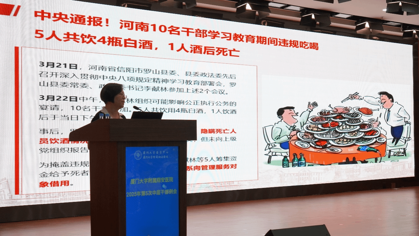 6月26日下午,我院召开深入贯彻中央八项规定精神学习教育警示教育会,党委书记左正宏,党委副书记、院长何伟玲,纪委书记傅万里,院领导班子成员出席会议。各职能部门、临床医技科室、护理单元负责人,党支部书记,思明院区管委会成员等干部职工参加会议。